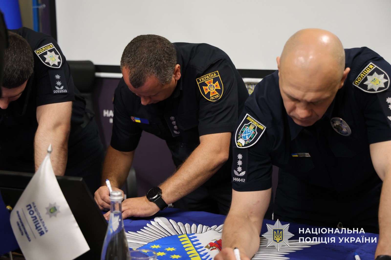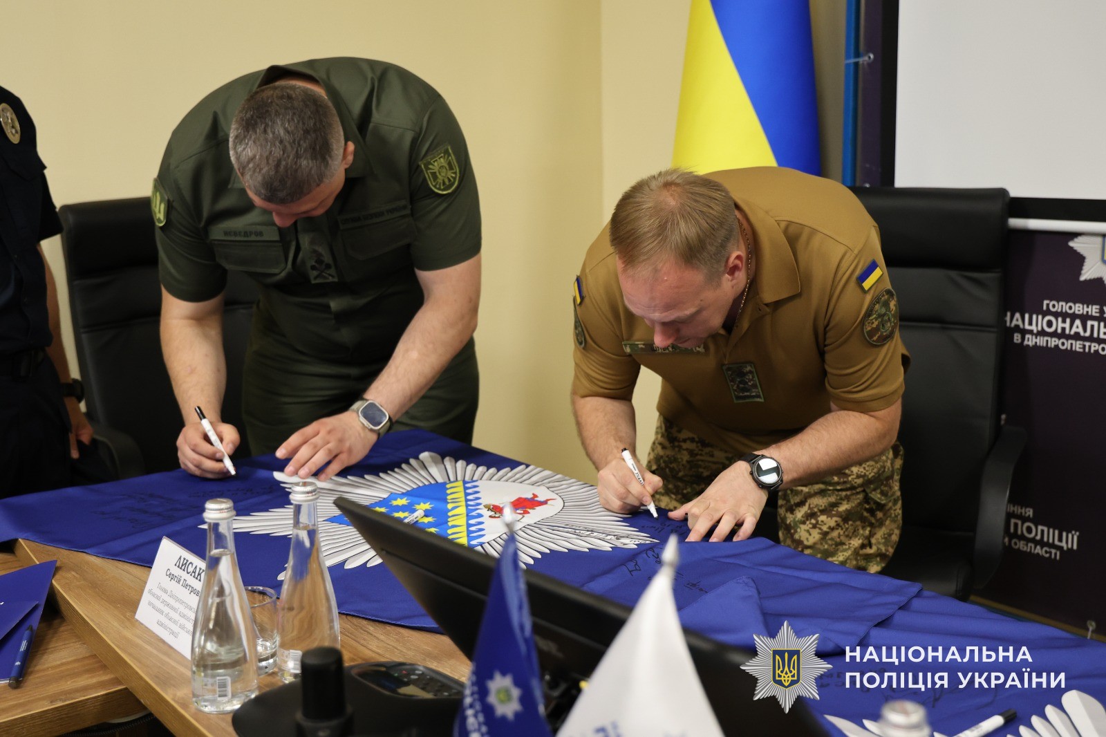 Кожен з присутніх залишив на державному прапорі пам’ятний підпис, як символ єдності, пам’яті й вдячності тим, хто стоїть на варті порядку і безпеки.