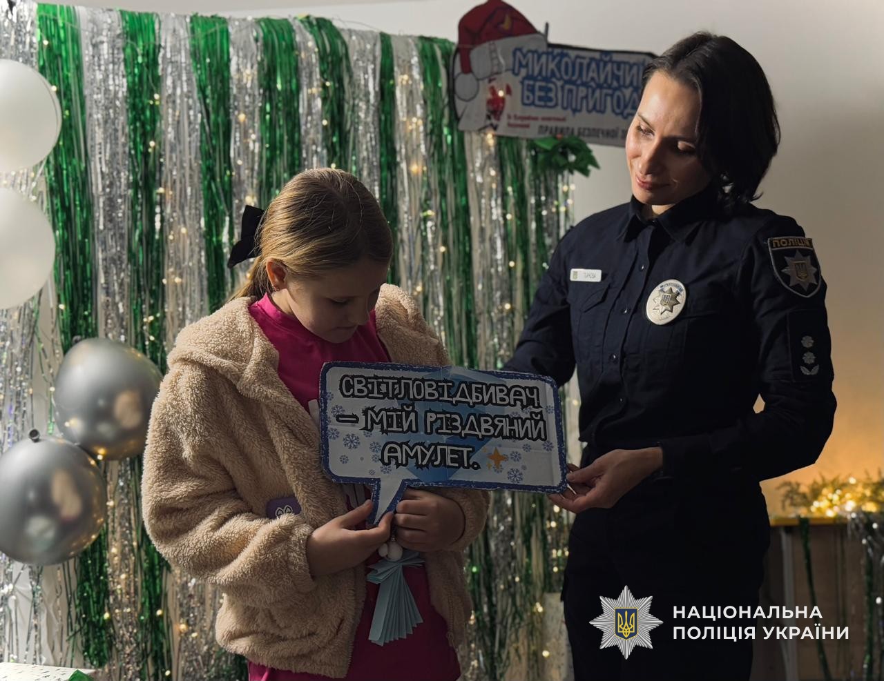 В перше зимове дитяче свято поліцейські завітали до Васильківського ліцею аби навчити та привітати учнів. На імпровізованому перехресті діти вивчали правила безпеки на дорозі у вечірній час. На інших локаціях маленькі учасники заходу створювали світловідбивальні прикраси на святкову тематику, які допоможуть бути помітними у темряві, а також власноруч виготовляли яскраві ялинкові прикраси.