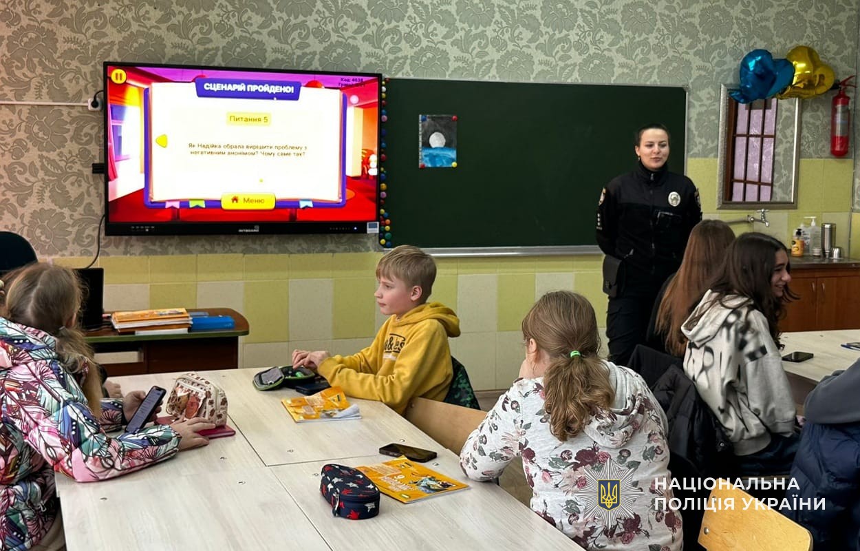 Поліцейські Служби освітньої безпеки провели для школярів інтерактивні зустрічі, присвячені правилам безпечної поведінки в онлайн-просторі. Діти активно ставили запитання, ділилися власним досвідом та отримували корисні поради.