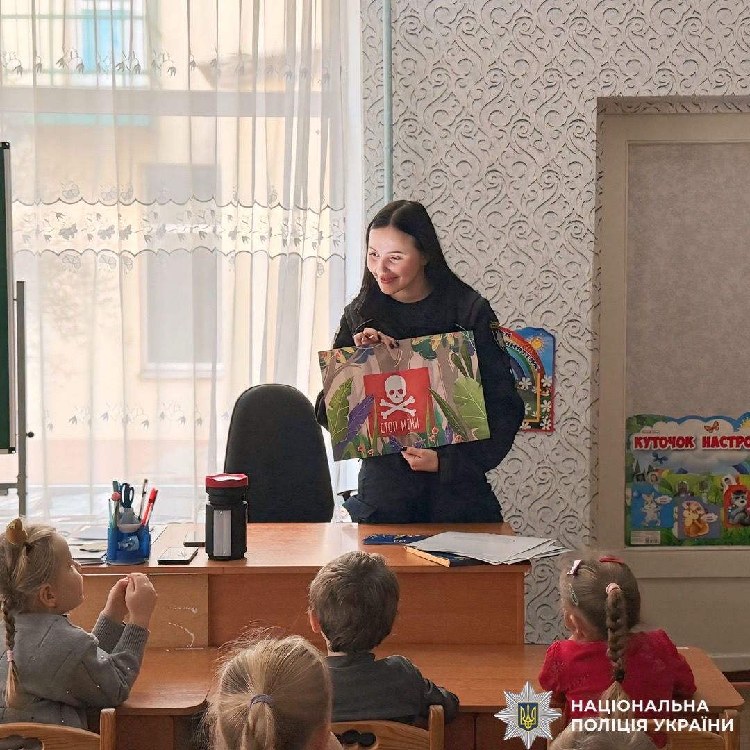 Поліцейська наочно показала, де можуть ховатися небезпечні знахідки, навчила дітей правильно діяти у разі їх виявлення та наголосила, що найголовніше правило — одразу кликати дорослих і звертатися до правоохоронців.