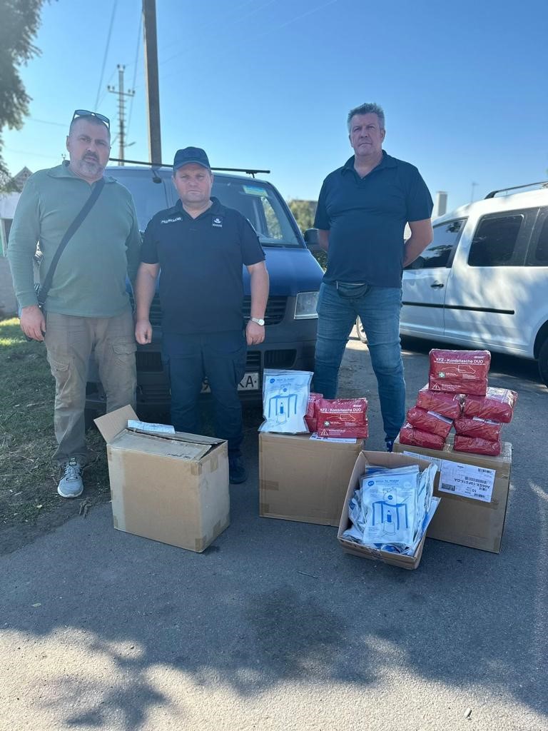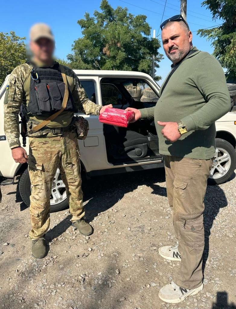 Крім того, спільно з поліцейськими з відділу реагування патрульної поліції Нікопольського районного управління поліції аптечки вручили нашим захисникам зі Збройних Сил України, прикордонникам і просто людям, домівки яких неодноразово потерпали від російської агресії. А також тим, хто допомагає жителям деокупаваного Бериславського району з підвозом хлібу.