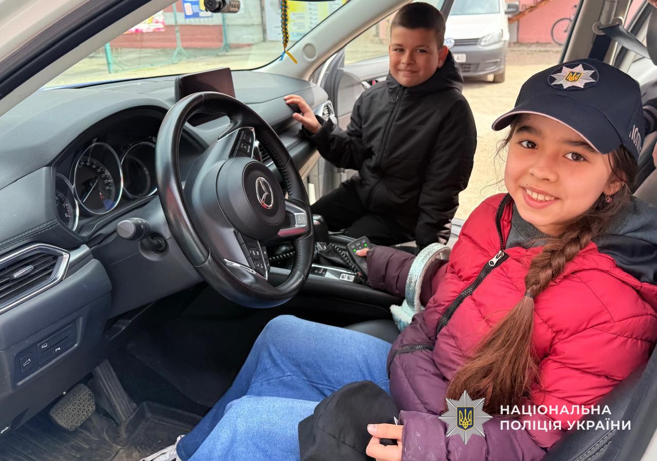 Після бесіди діти оглянули службовий автомобіль, посиділи всередині, ознайомилися з обладнанням і навіть змогли ввімкнути проблискові маячки. Це викликало справжній захват.