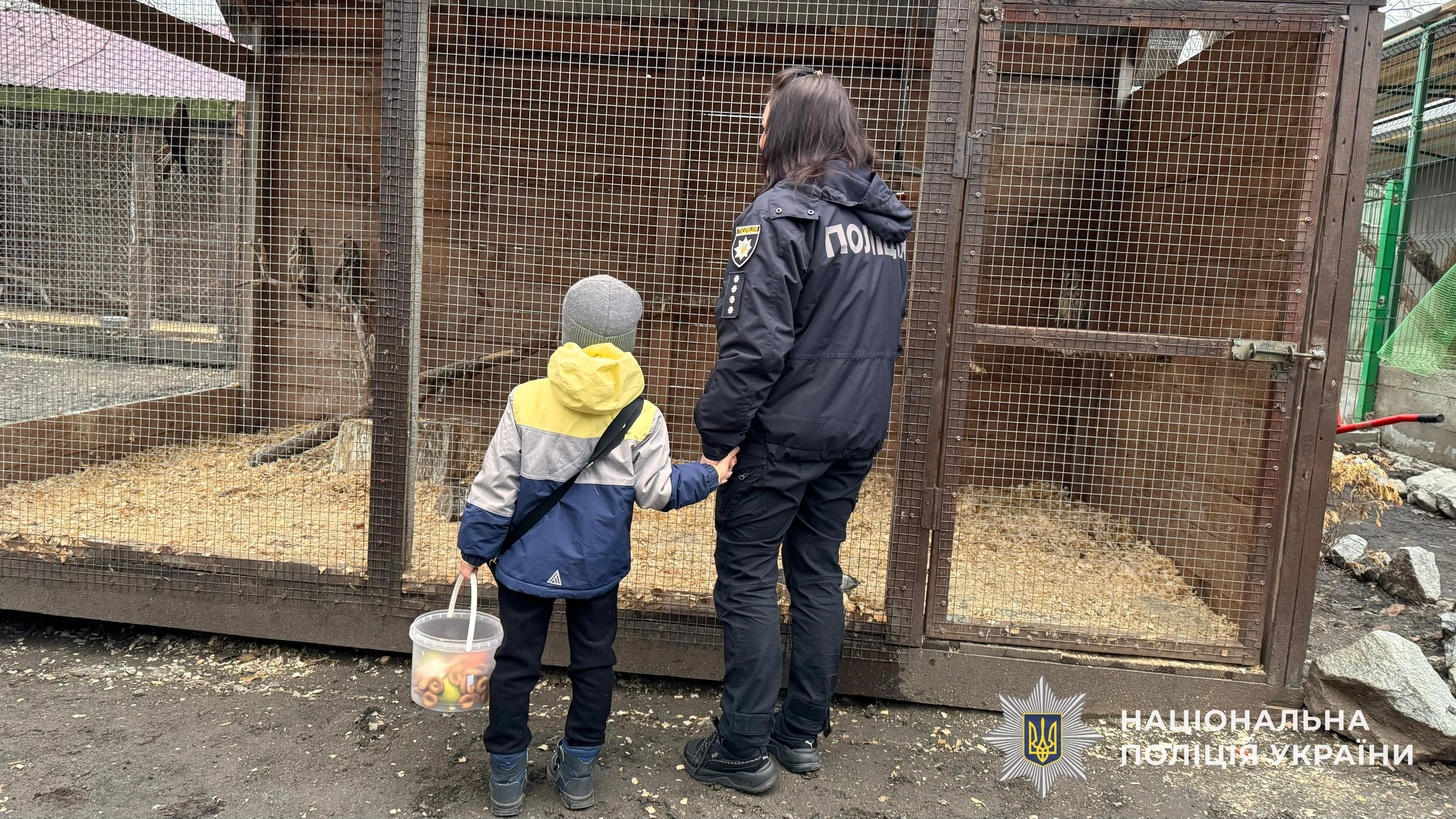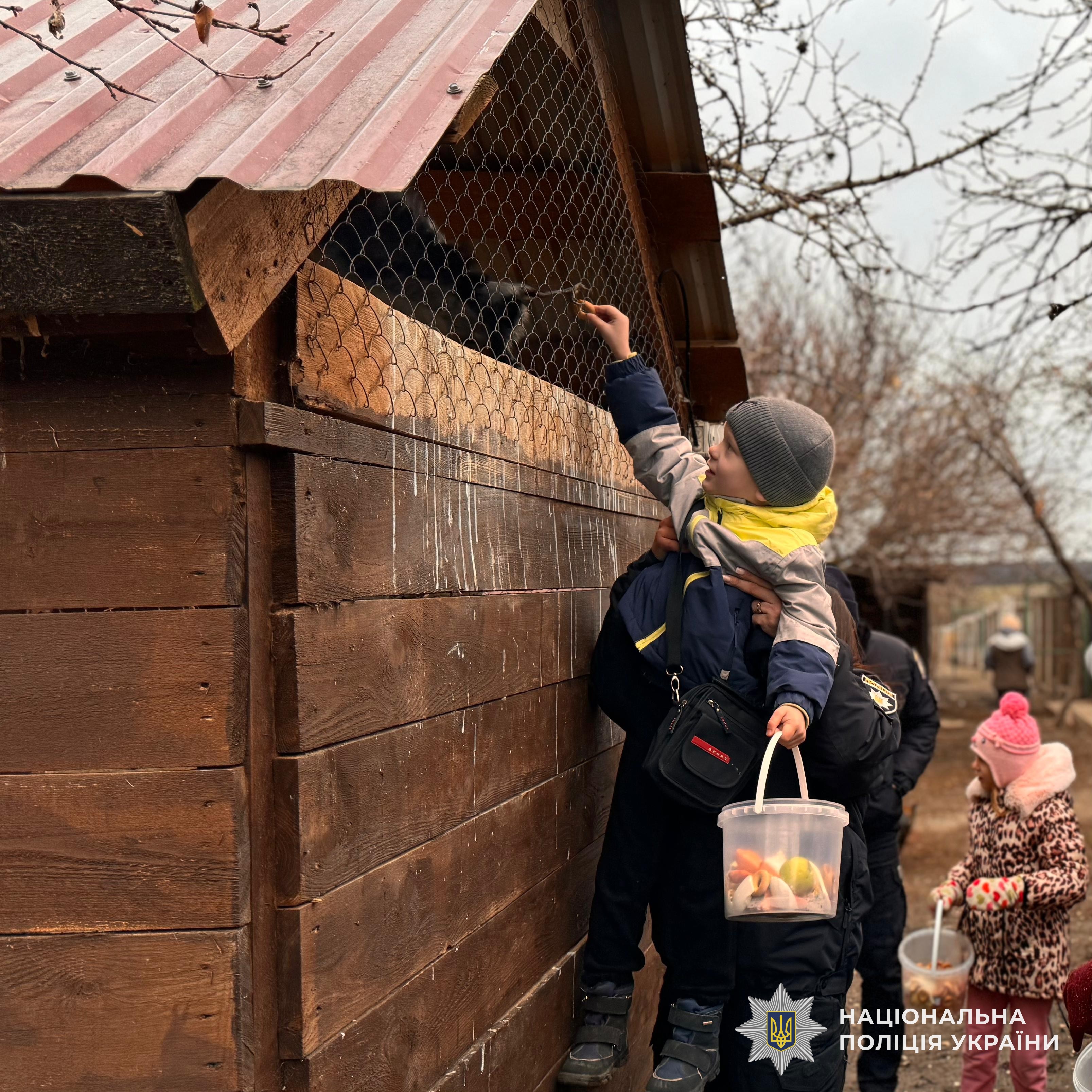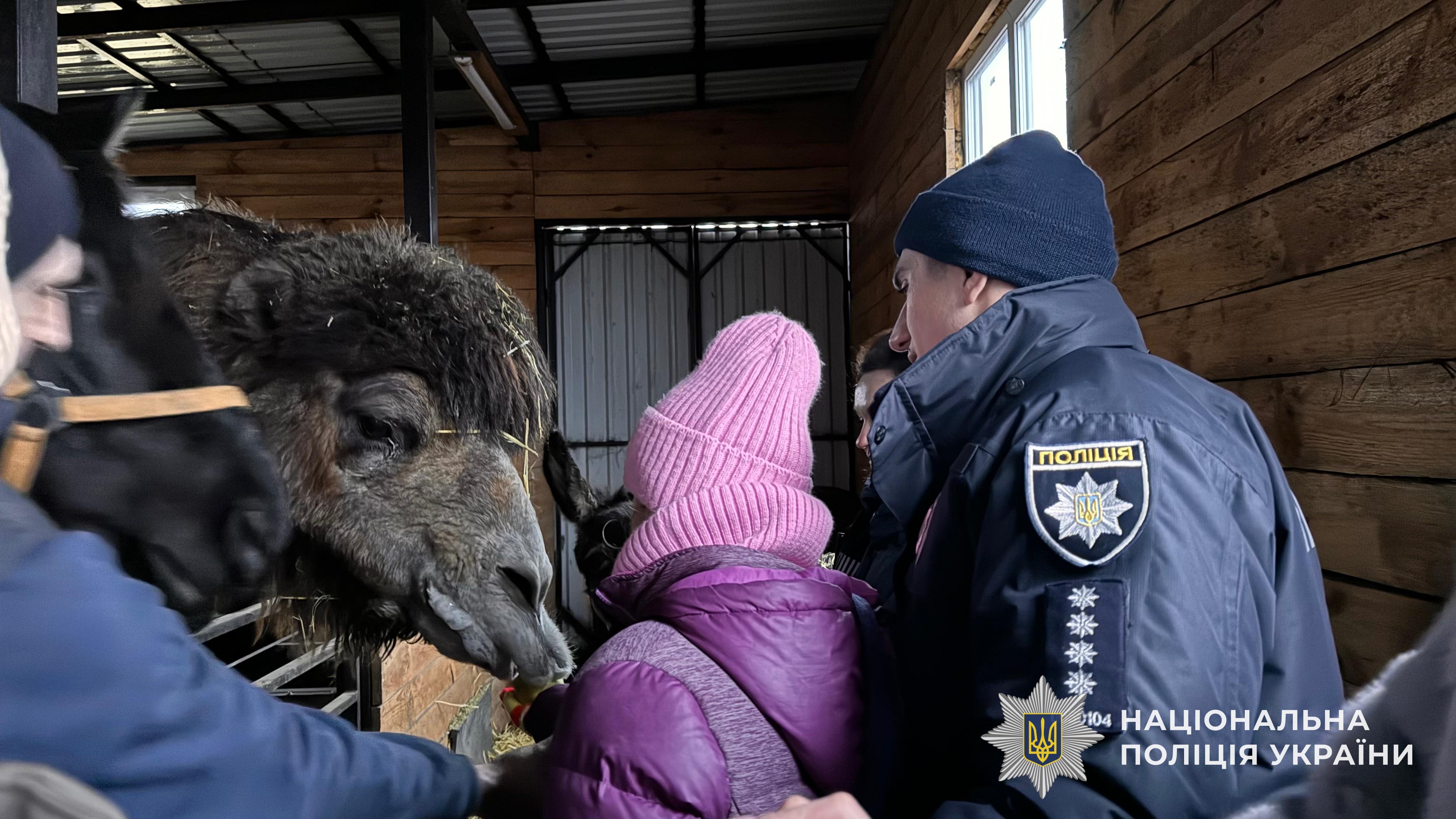 Діти разом із правоохоронцями привезли тваринам смачні гостинці: ласощі для собак, котів, єнотів, коней, лисиць, вовків, диких свинок і навіть верблюда. Частина тваринок у притулку - поранені і врятовані з зони бойових дій. Разом вони нагодували тварин, познайомилися з їхнім життям та умовами перебування.