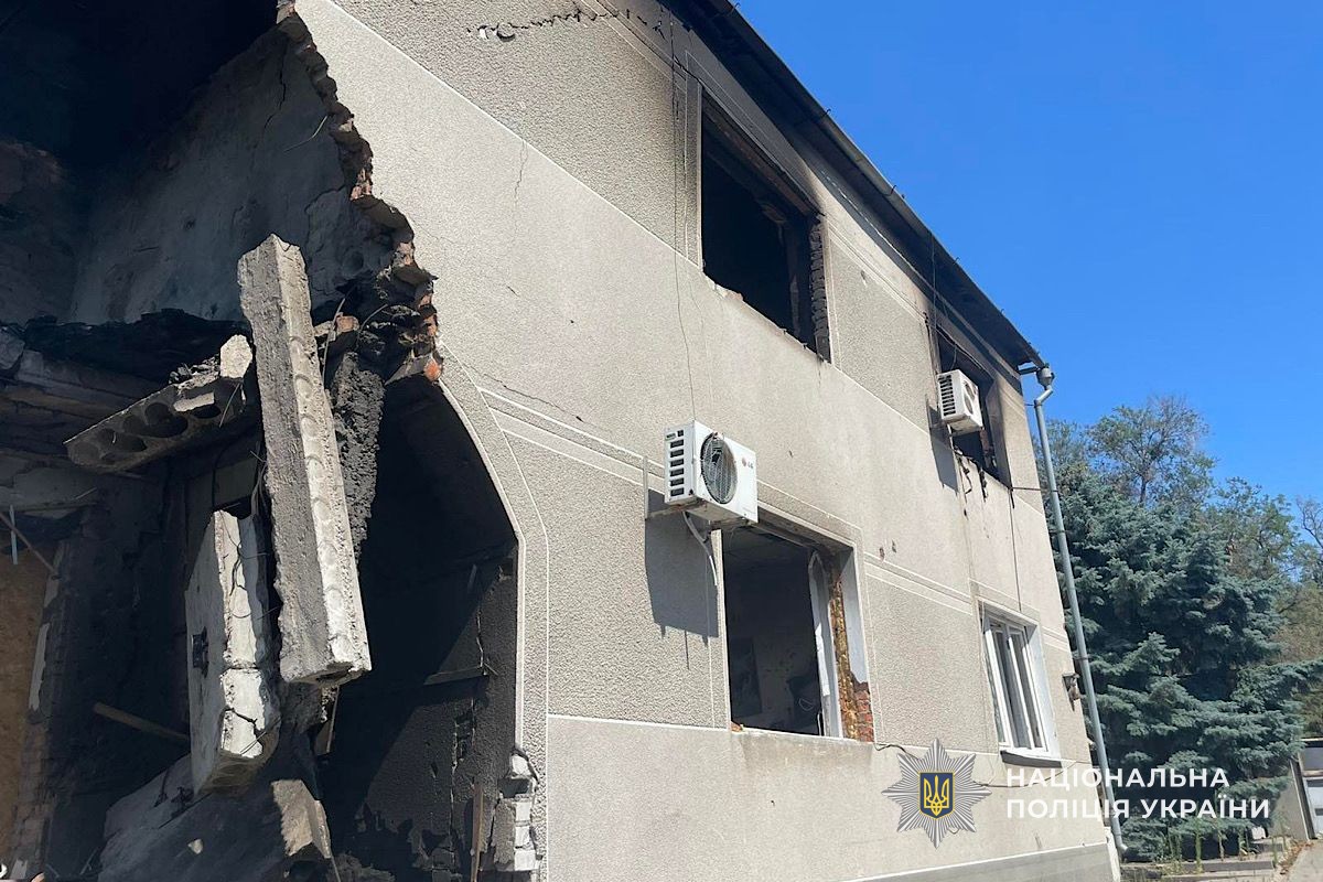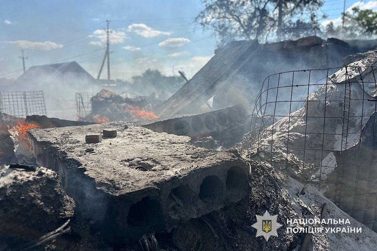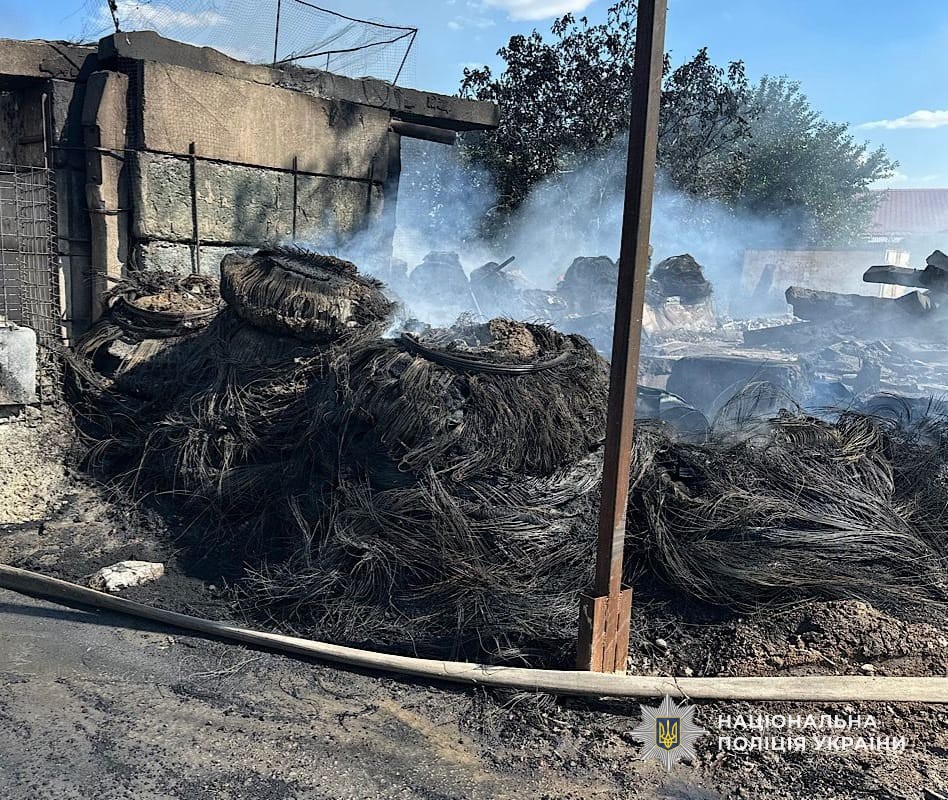 Цього ж дня агресори цілеспрямовано скерували декілька дронів по місцю несення служби поліцейських Нікопольського районного управління поліції - будівля вигоріла вщент. На щастя, ніхто з правоохоронців не постраждав.