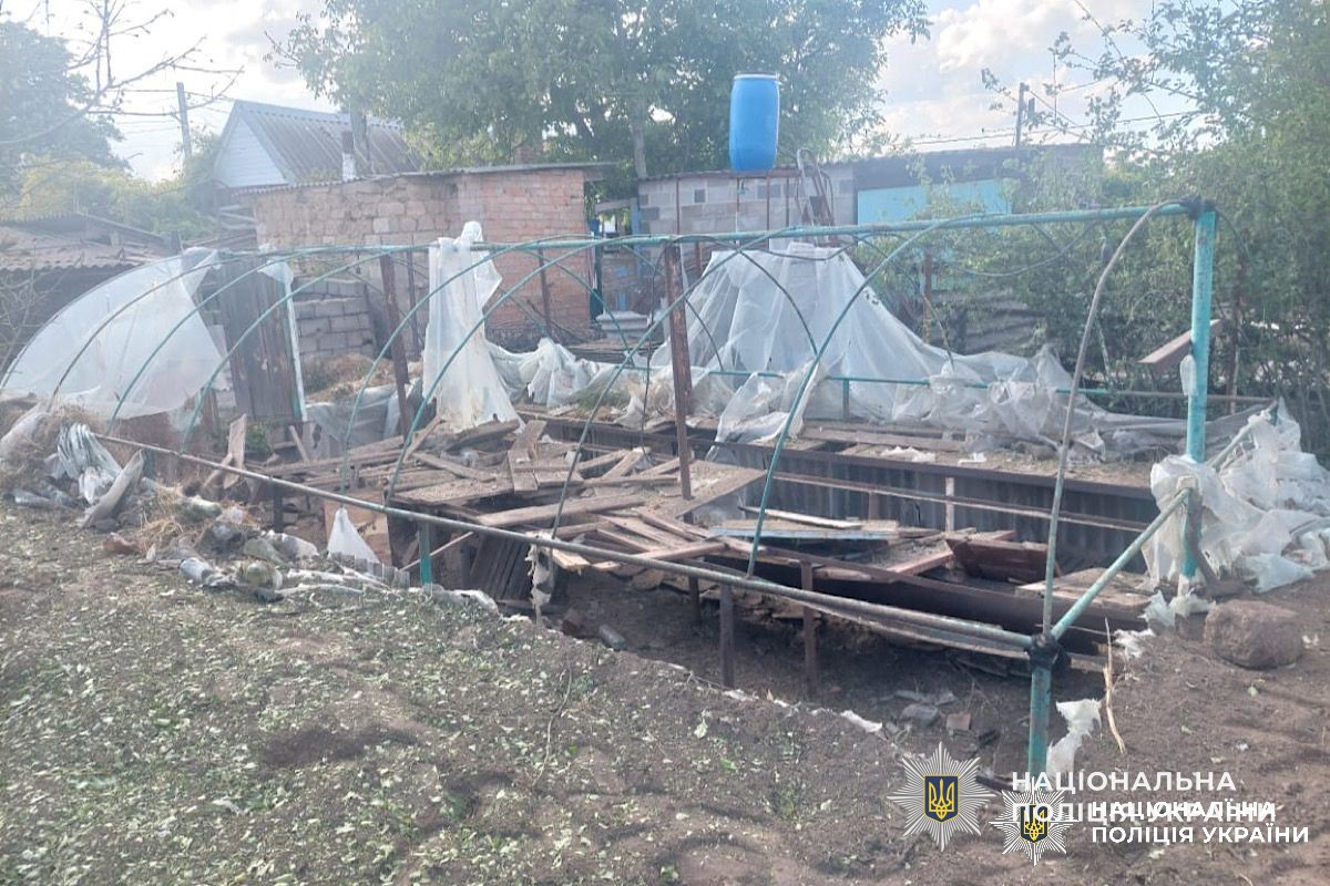 Слідчо-оперативні групи Нікопольського РУП задокументували пошкодження близько 10 приватних осель, господарських споруд, сонячних панелей та парників. В будівлях понівечено дахи та стіни, вибито віконне скло, посічено фасади та огорожі навкруг.