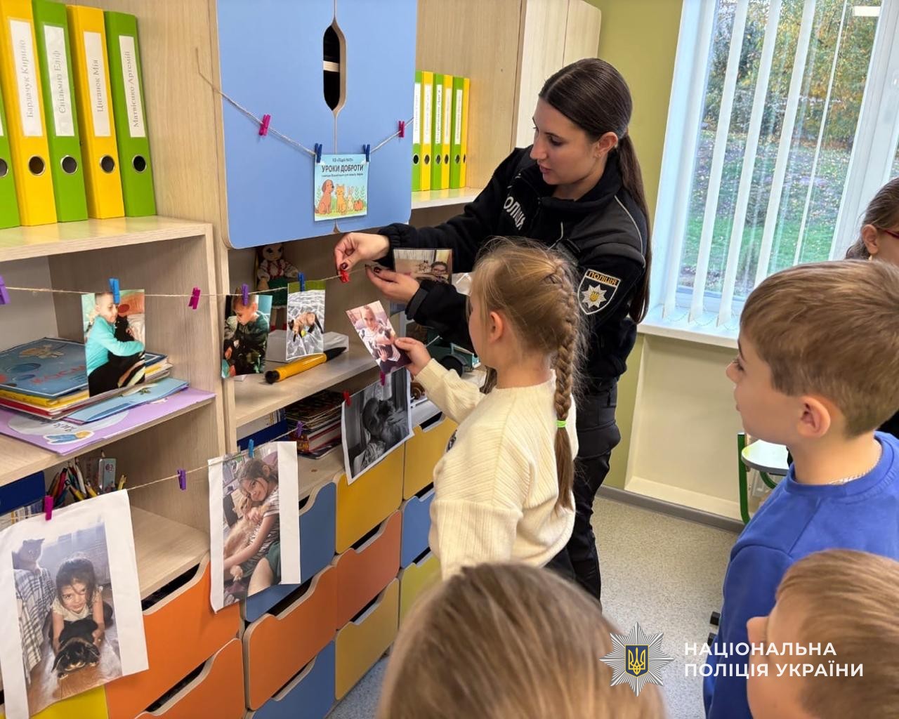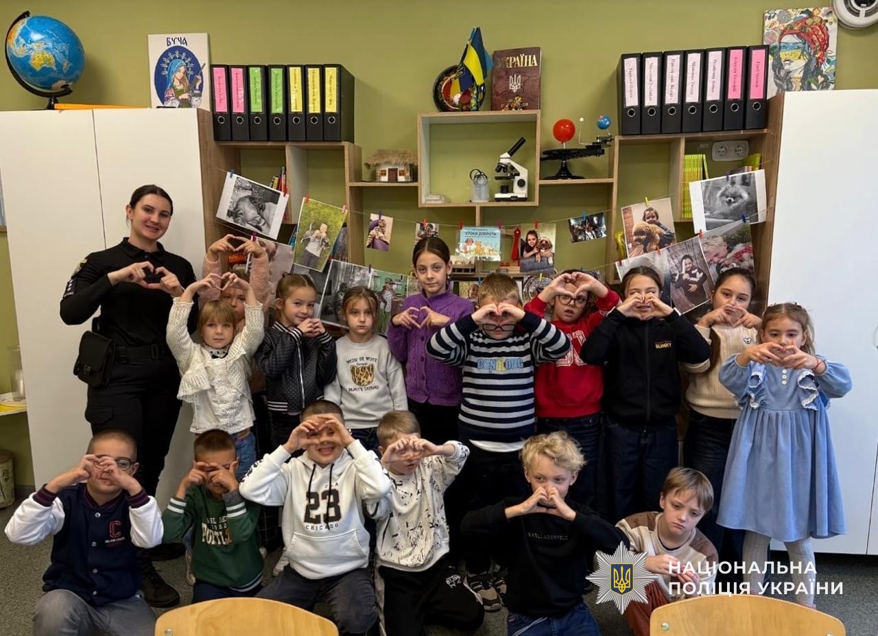 Поліцейська подякувала дітям за активність і щирість, побажала завжди залишатися добрими, не ображати тварин та допомагати тим, хто цього потребує.