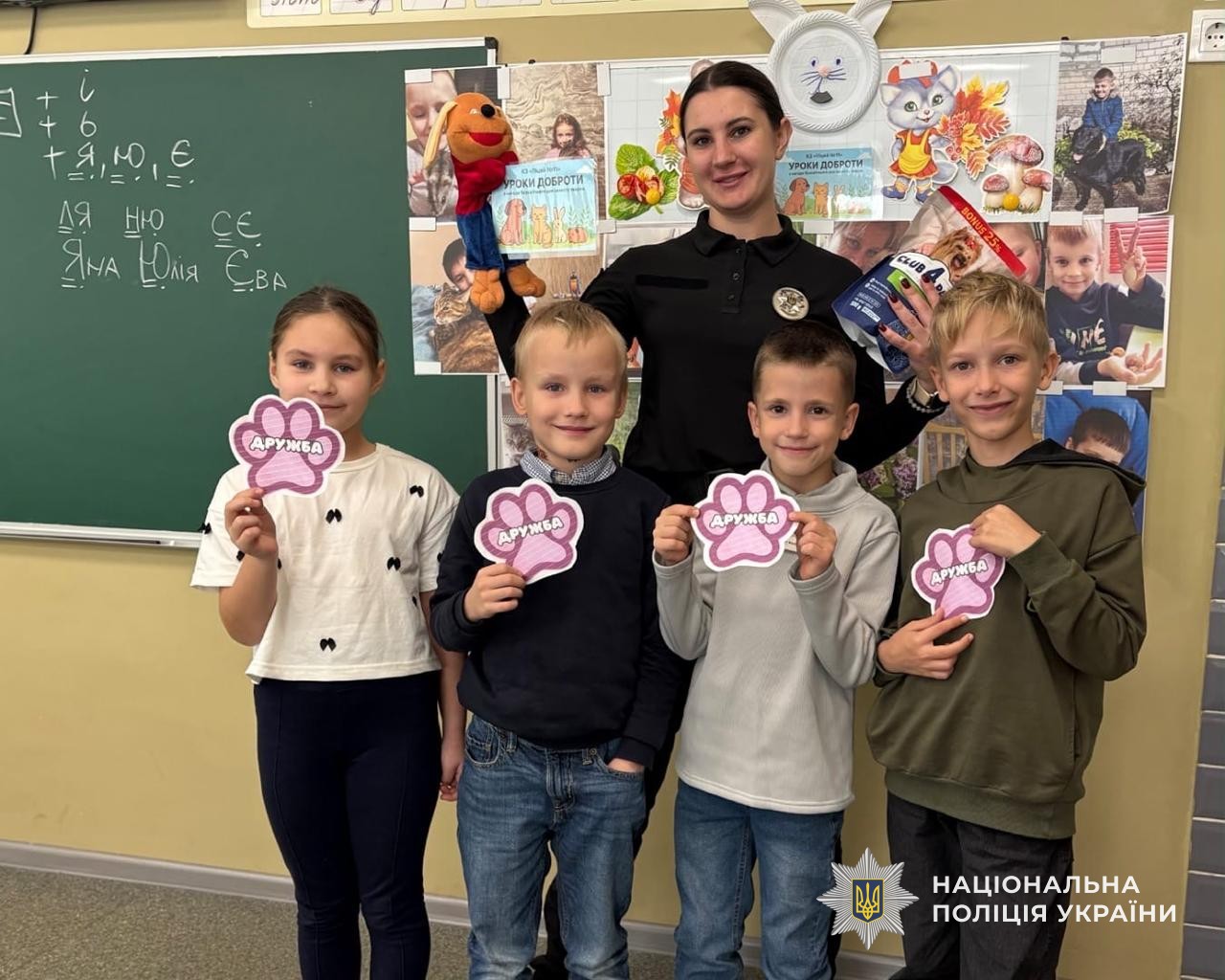 16 жовтня в одному з навчальних закладів Кам`янського відбувся урок доброти. Провела його поліцейська служби освітньої безпеки Анастасія Наливайченко. Під час зустрічі діти дізналися, що важливо бути уважними й добрими не лише до людей, а й до тварин.