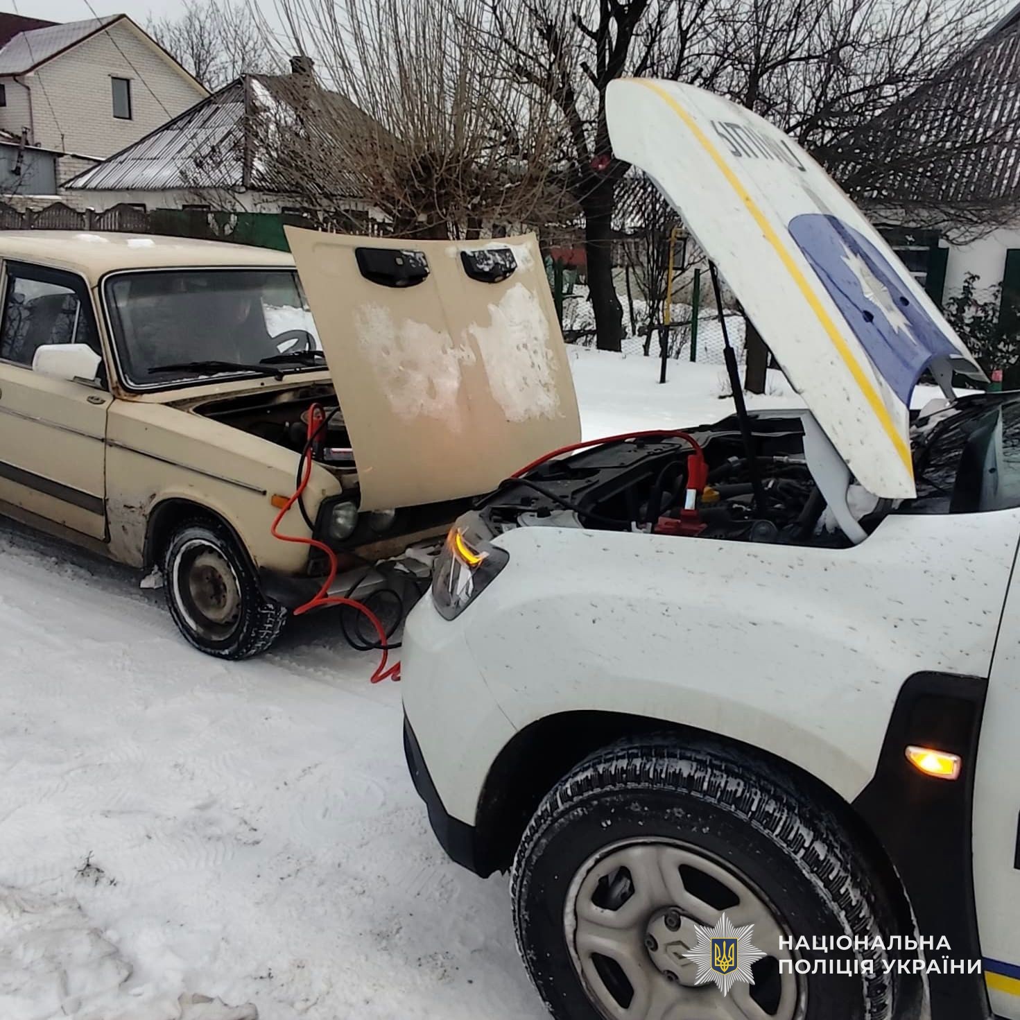 Поліцейський офіцер громади Ігор Рощенко разом із колегами за допомогою пускових дротів підзарядили акумулятор, що дозволило завести автомобіль та безпечно продовжити рух.