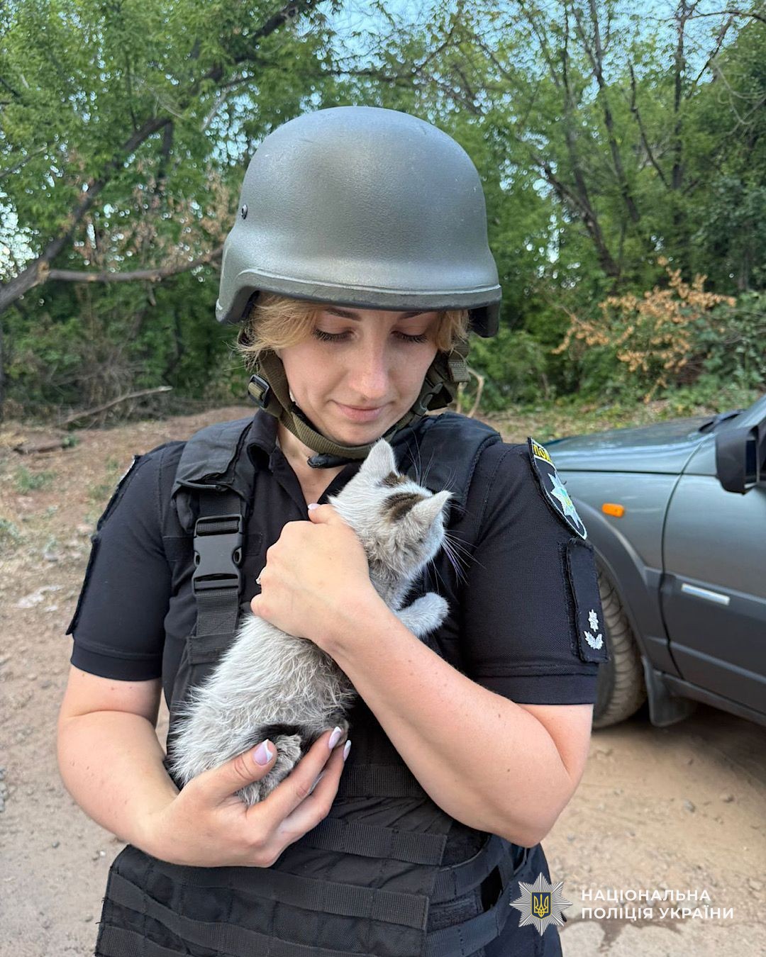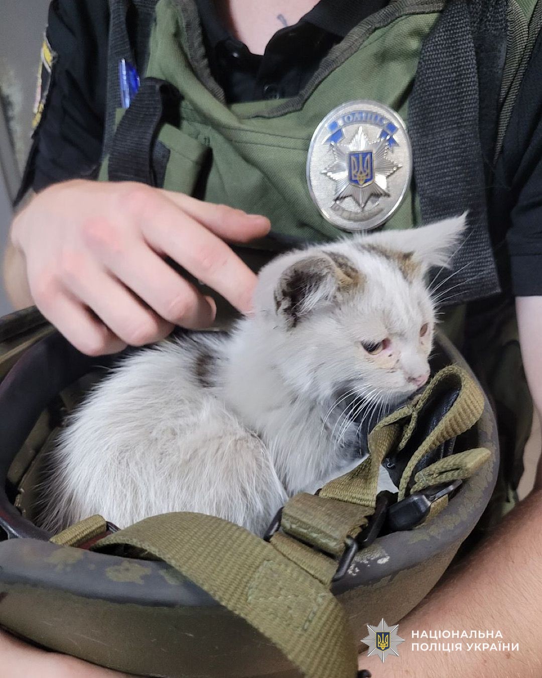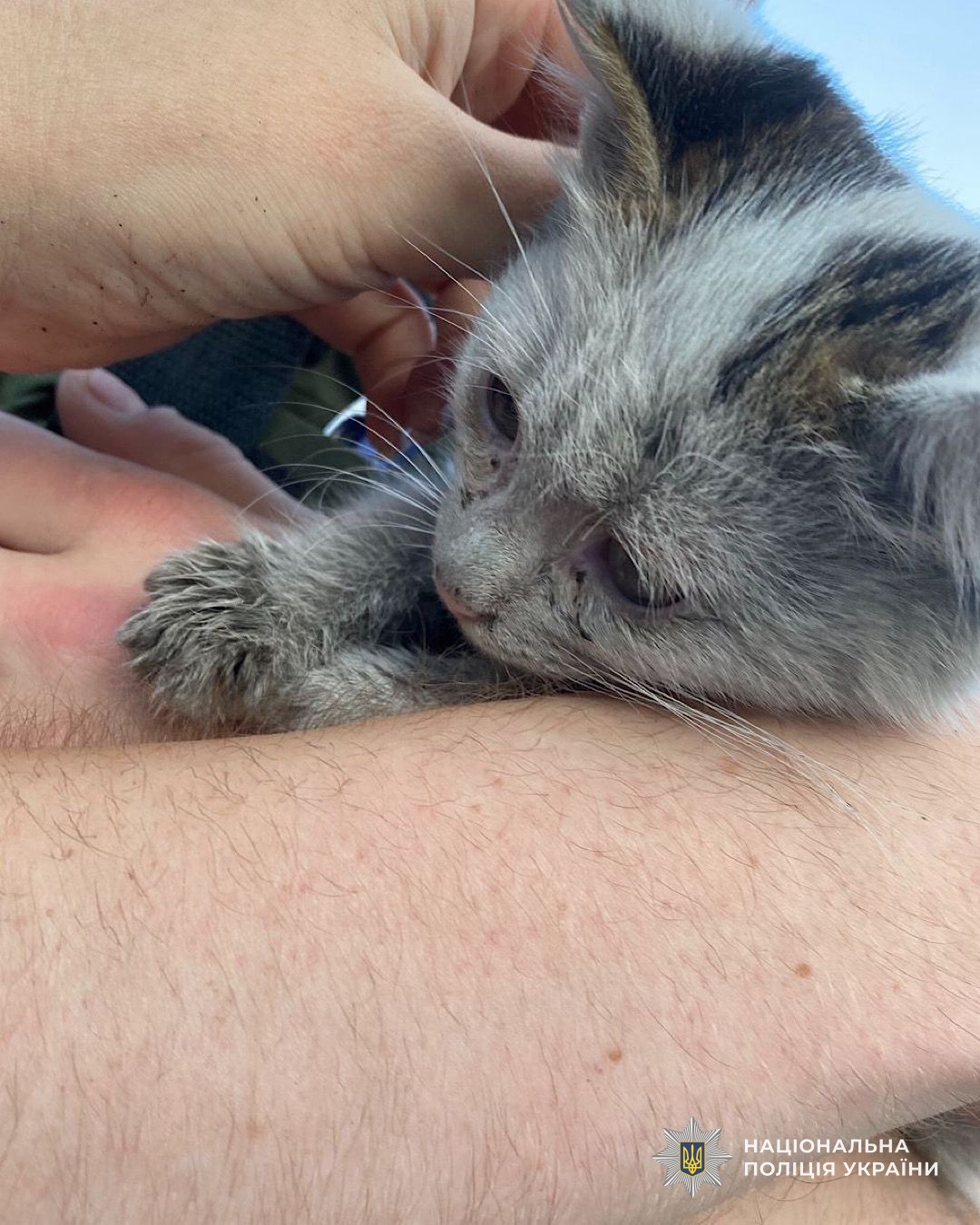 Під час документування наслідків удару по Кривому Рогу, старша слідча відділення поліції №4 Наталія Ольхова почула жалібне нявкання. Разом із рятувальниками вона допомогла дістати з-під завалів двомісячне кошеня, що дивом вижило після обстрілу.