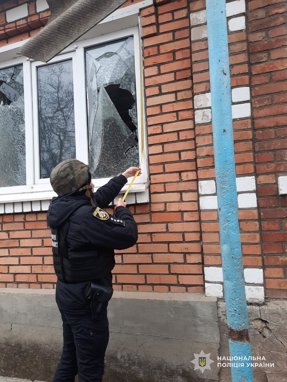 Внаслідок влучань побито три приватні будинки в районному центрі. Понівечено дах, побито фасади та стіни, вилетіло віконне скло.