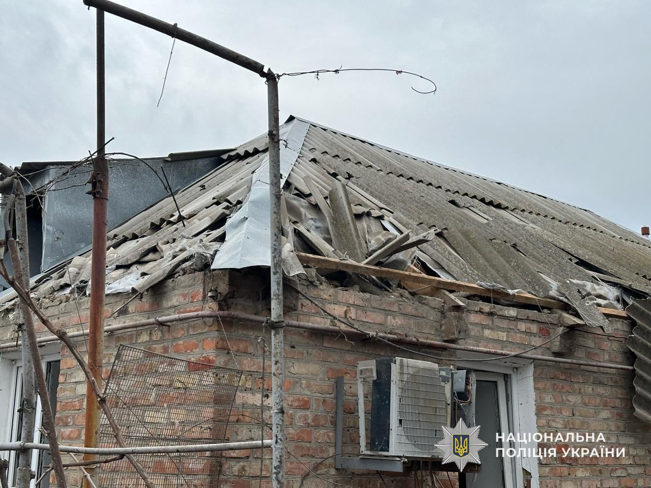 Від ударів російського залізяччя пораненння отримав 33-річний чоловік. В ході огляду місць прильотів правоохоронці встановили, що понівечено соціальний заклад, багатоповерхівка, приватні будинки, господарські споруди, електрообладнання та газопровід. В будівлях посікло фасади, уламками побило стіни та посипалися шибки.