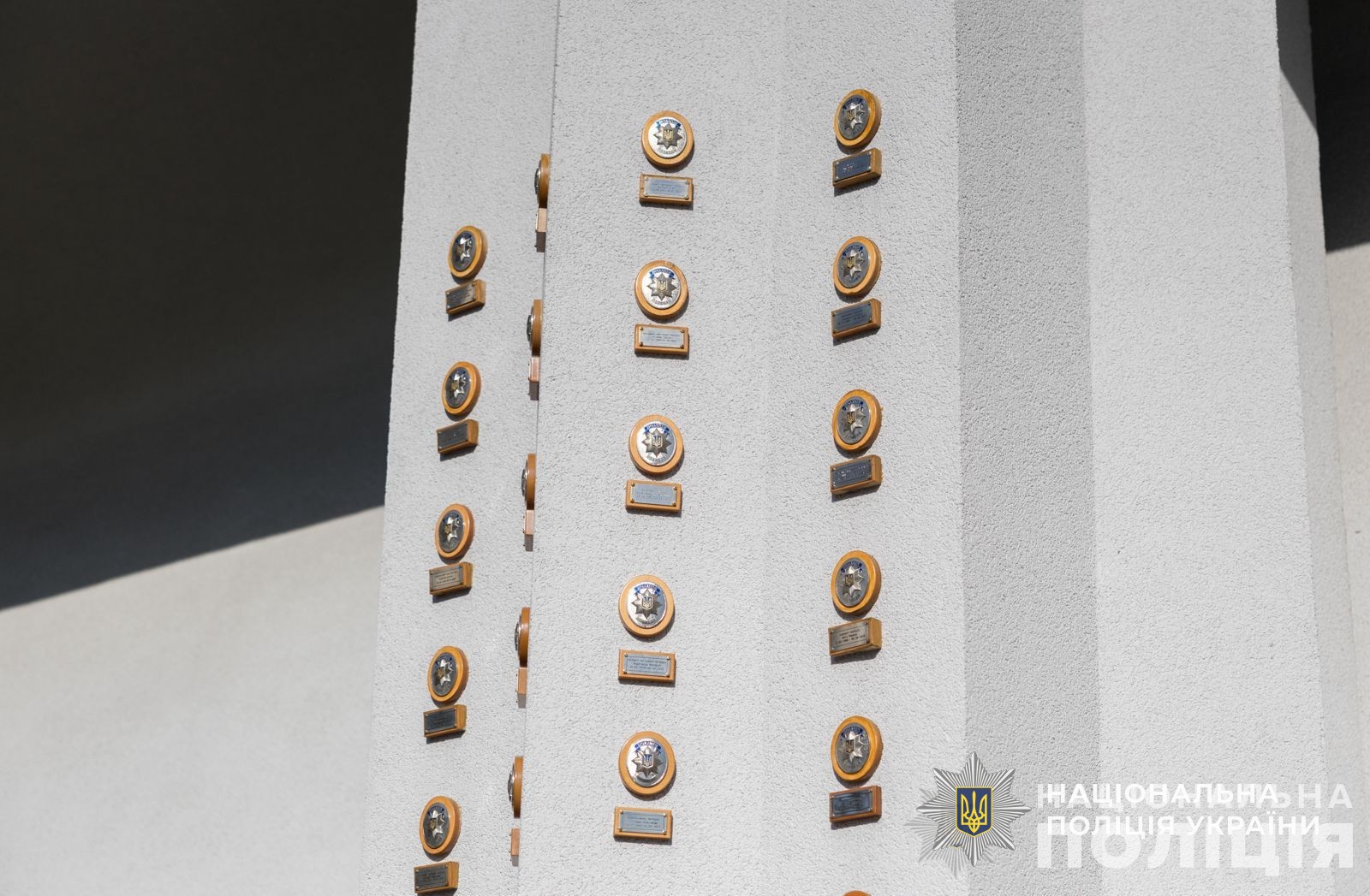 Біля Меморіалу памʼяті загиблих поліцейських міжнародні партнери хвилиною мовчання вшанували полеглих поліцейських-захисників України.