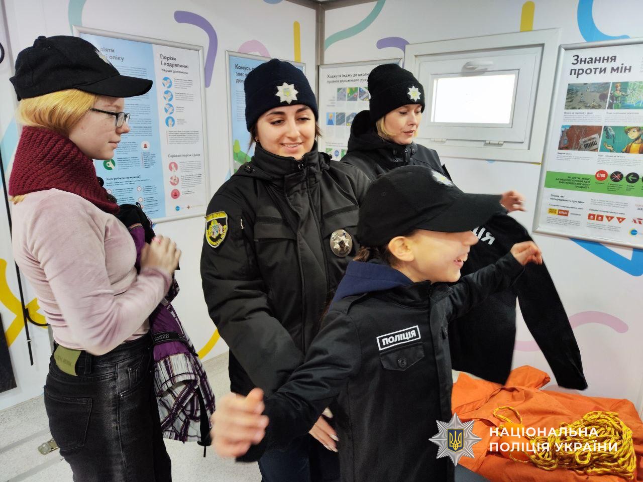 Поліцейські продовжують проводити інтерактивні уроки для дітей Кам`янського району на базі мобільного класу й навчають їх важливим безпековим правилам.