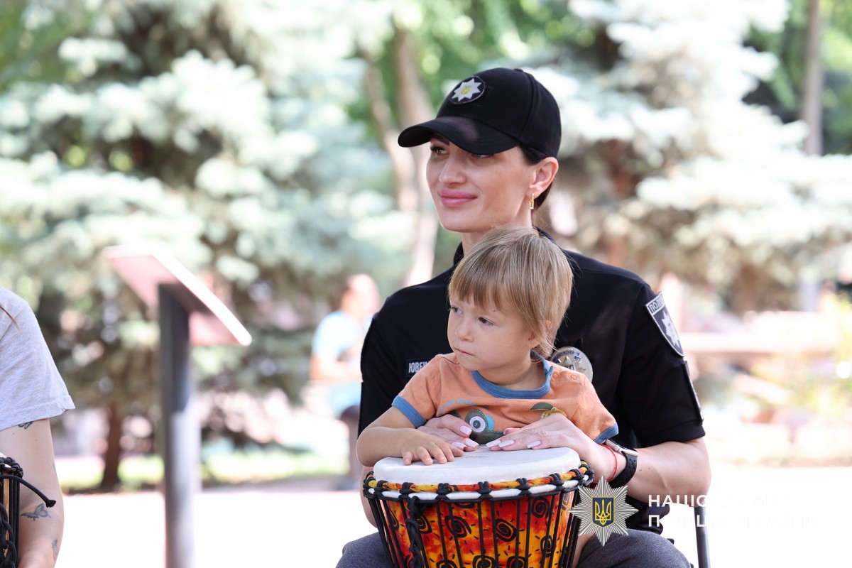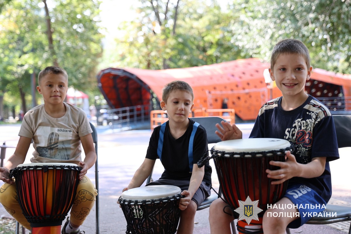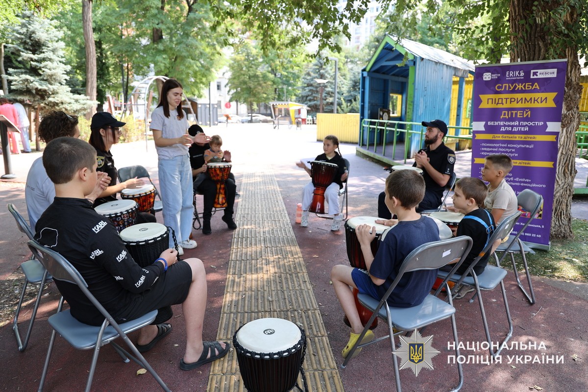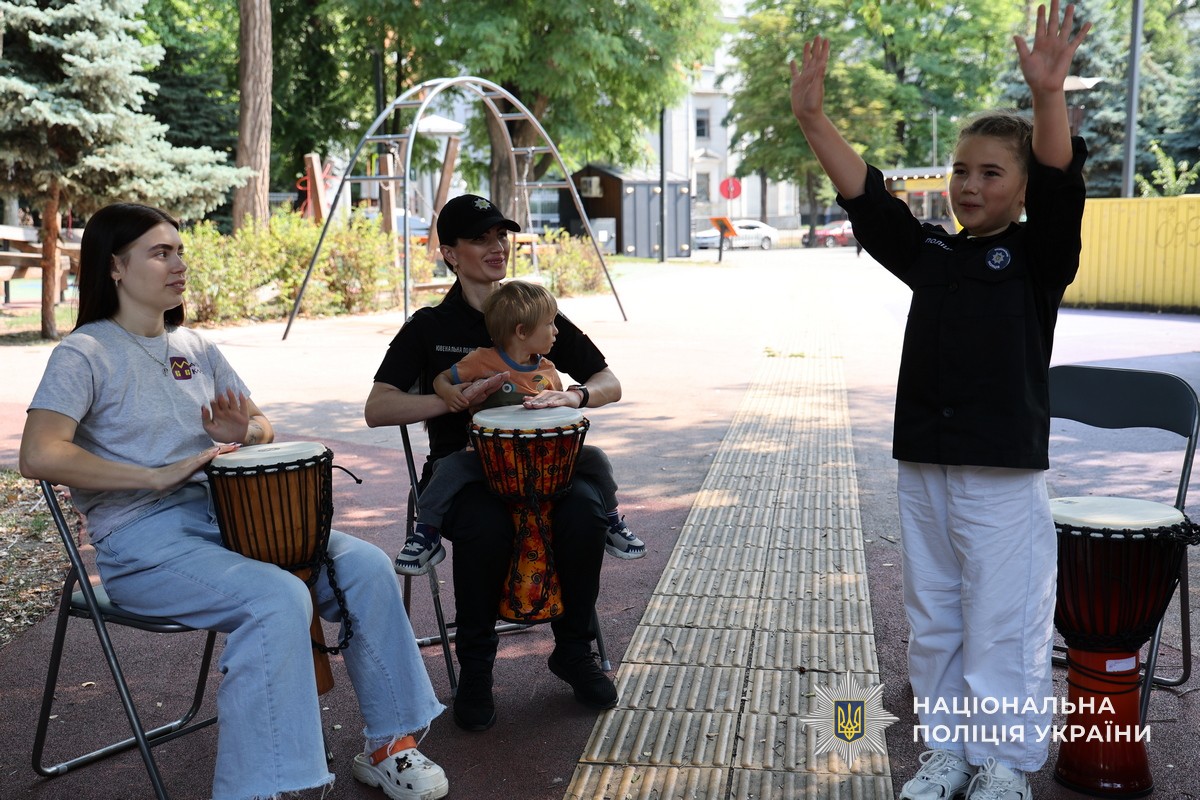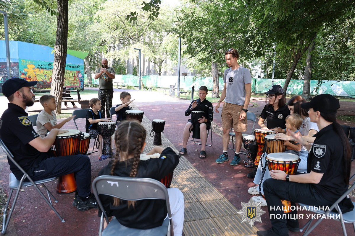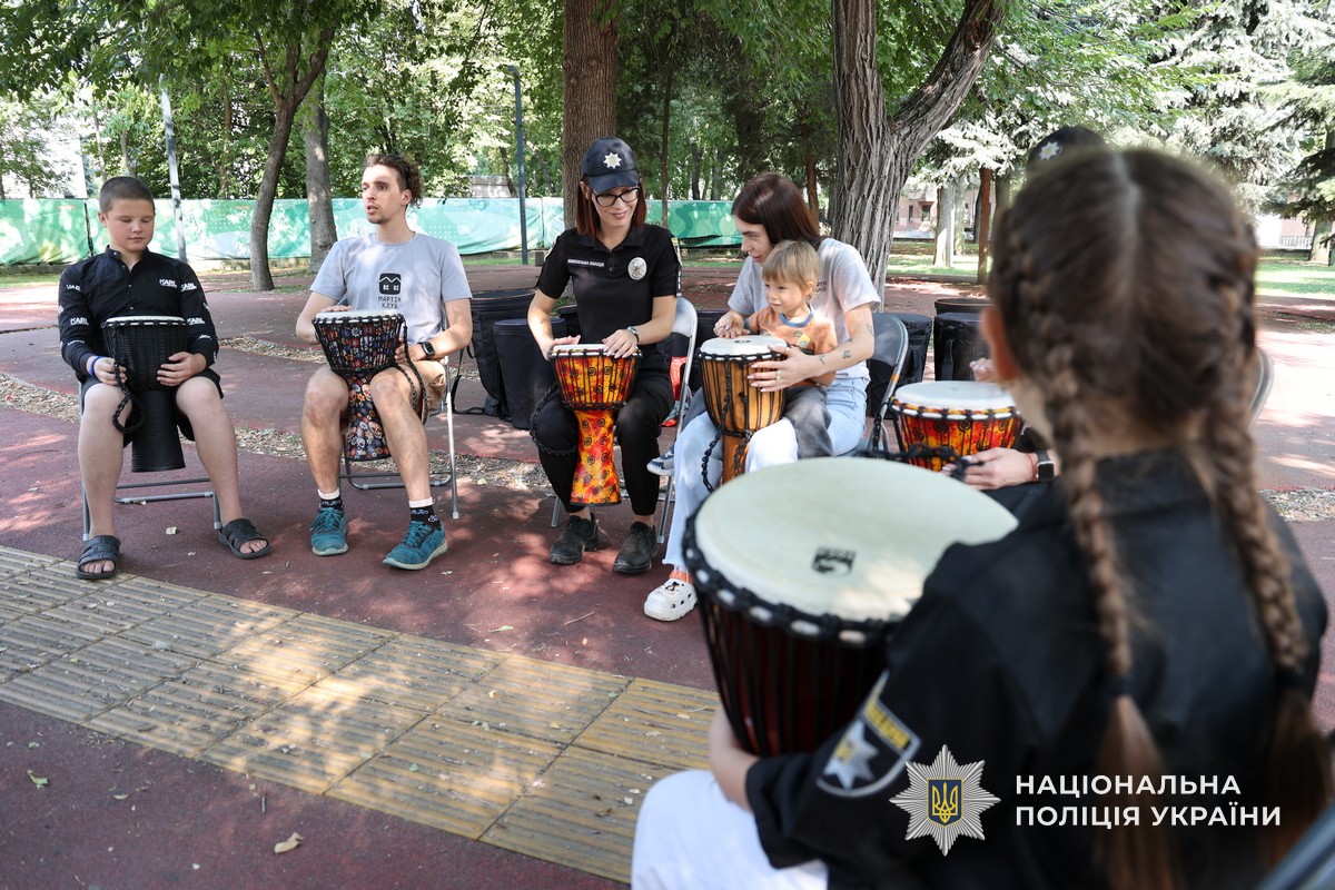 Гра на барабанах як спосіб психологічного розвантаження: поліцейські та ГО "МАРТІН-клуб" провели для дітей арттерапевтичний захід
