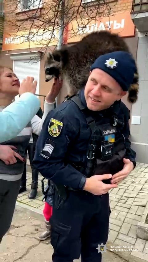 Історія із щасливим закінченням: у Нікополі поліцейські прихистили в управлінні поліції єнота-втікача та знайшли його власника – військового медика