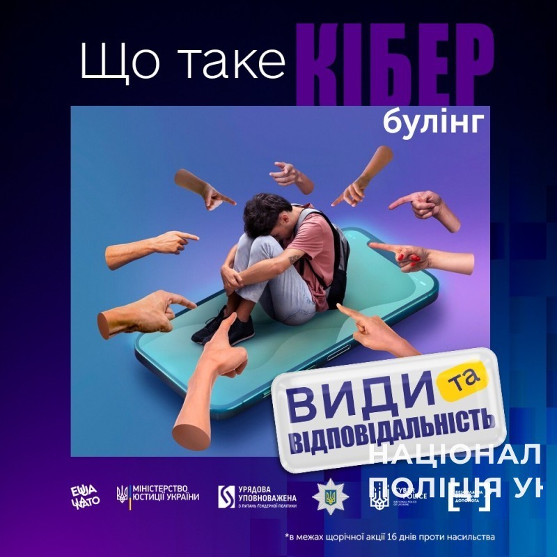 Кіберполіція інформує про відповідальність за вчинення різних видів булінгу