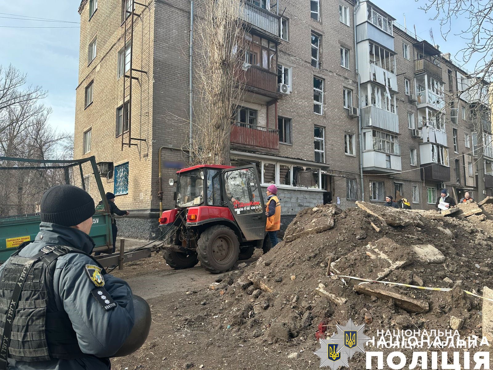 Неподалік від місця удару поліцейські розгорнули мобільний пункт, де приймають заяви від потерпілих щодо пошкодження майна та надають допомогу людям. Також про наслідки ворожого обстрілу можна повідомити на спецлінію 102.
