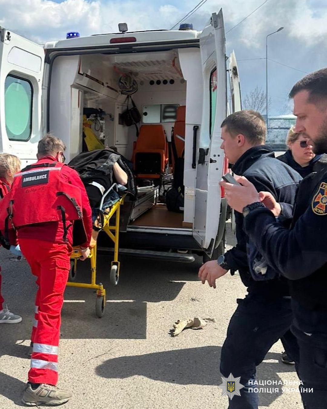 Сьогодні поліцейські сектору реагування патрульної поліції Дніпровського районного управління поліції №1 здійснили супровід автомобіля екстреної медичної допомоги з пораненими внаслідок ракетного удару.