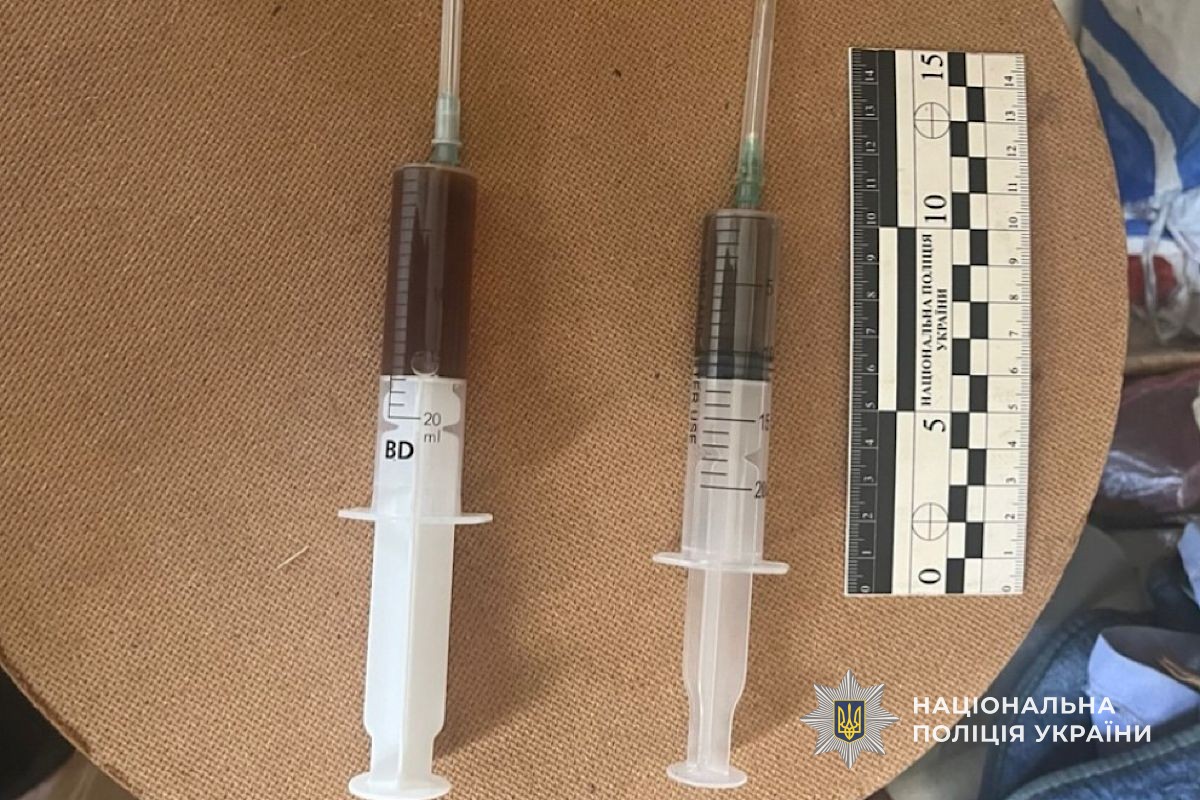 Правоохоронці вилучили у підозрюваних медичні шприци з опієм, 360 сліп-пакетиків з канабісом, 17 пляшок з речовиною невстановленого походження різного об’єму, грошові кошти, банківські картки, мобільні телефони та чорнові записи.
