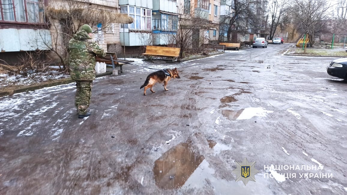 Криміналісти спільно з вибухотехніками за допомогою технічних засобів криміналістичної лабораторії оглянули місце злочину та вилучили фрагменти вибухового пристрою, встановили ймовірне місце пострілу. Службовий собака – німецька вівчарка Вайс по слідах привів з вулиці до сусіднього будинку, де підозрюваний залишив відстріляний гранатомет.