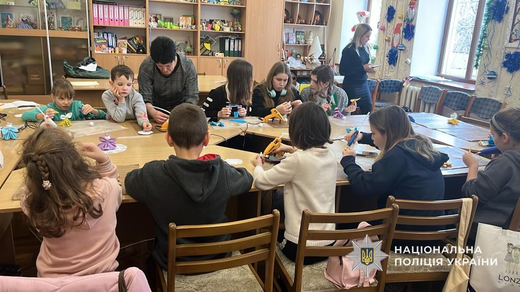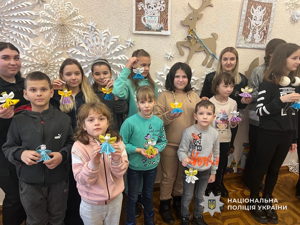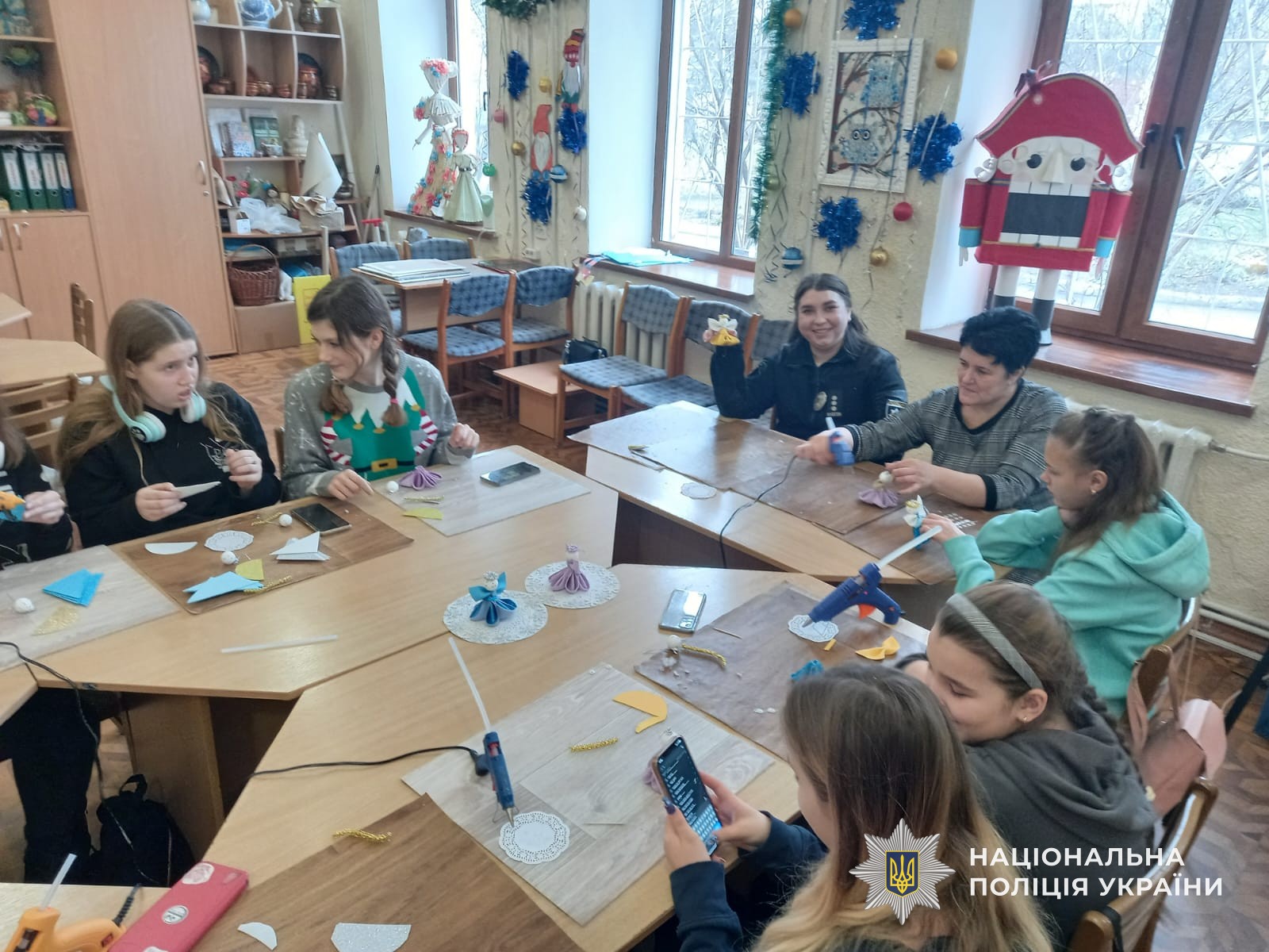 У різдвяно-новорічні свята ювенальні поліцейські Павлоградського районного відділу поліції зі школярами, які відвідують творчі колективи та дітьми, родини яких через обстріли окупантів вимушено покинули свої домівки, влаштували святковий майстер-клас.