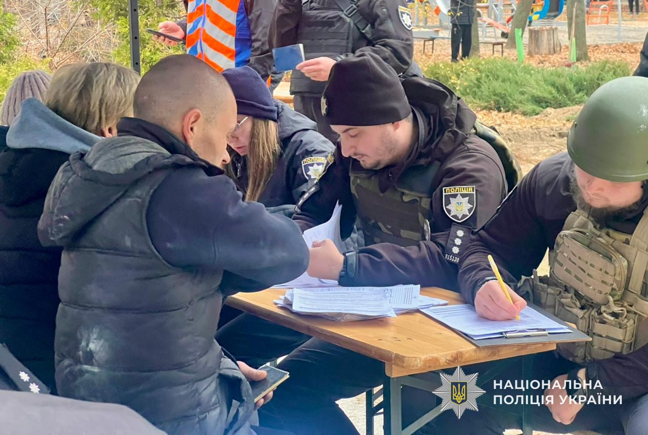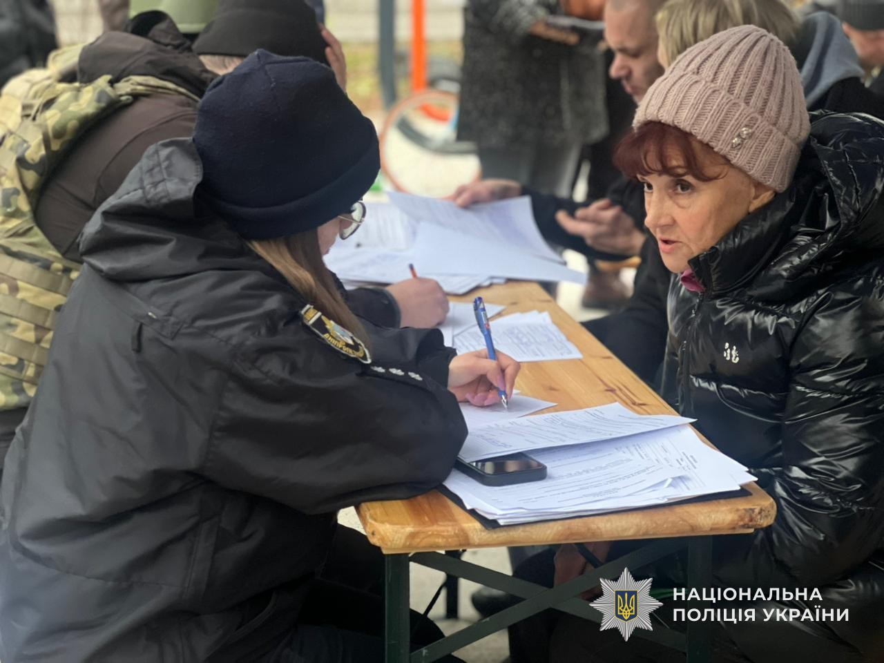 Поліцейські надають необхідні консультації та приймають заяви про пошкоджене майно.