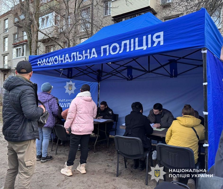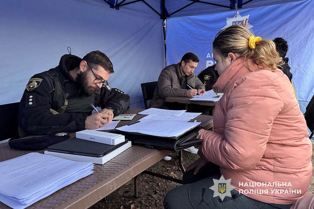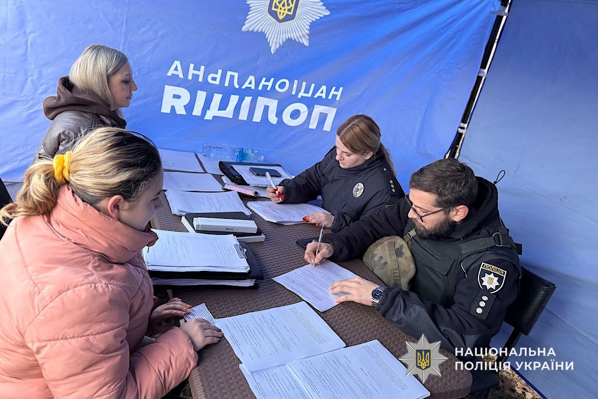 Правоохоронці розгорнули мобільний пункт для прийому звернень громадян, які постраждали від чергового обстрілу. Поліцейські опитують людей, фіксують руйнування та надають всебічну допомогу мешканцям. Слідчі документують наслідки ворожої атаки.