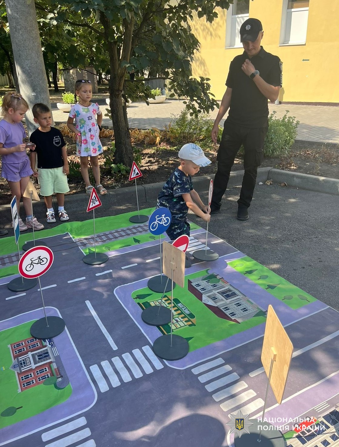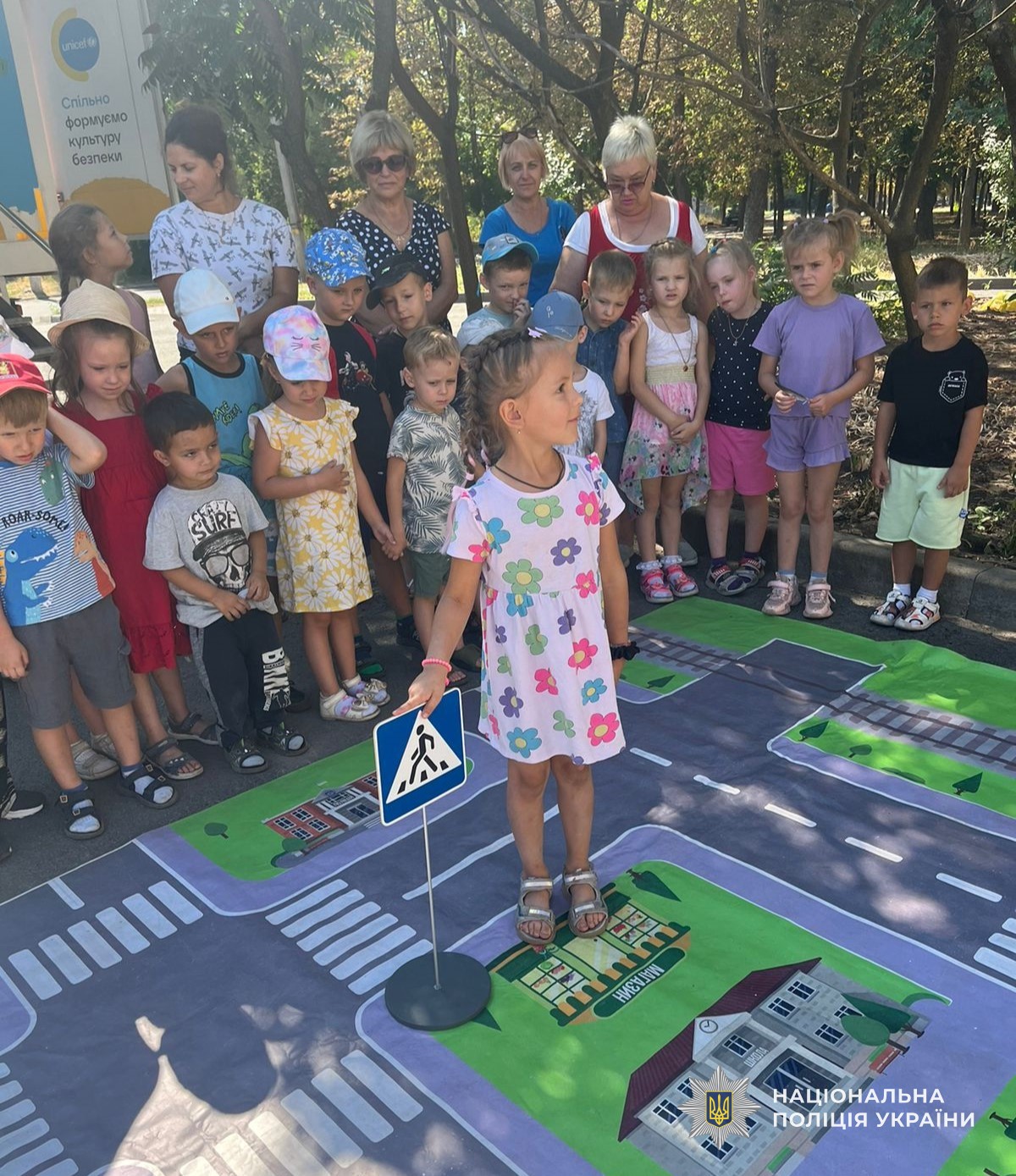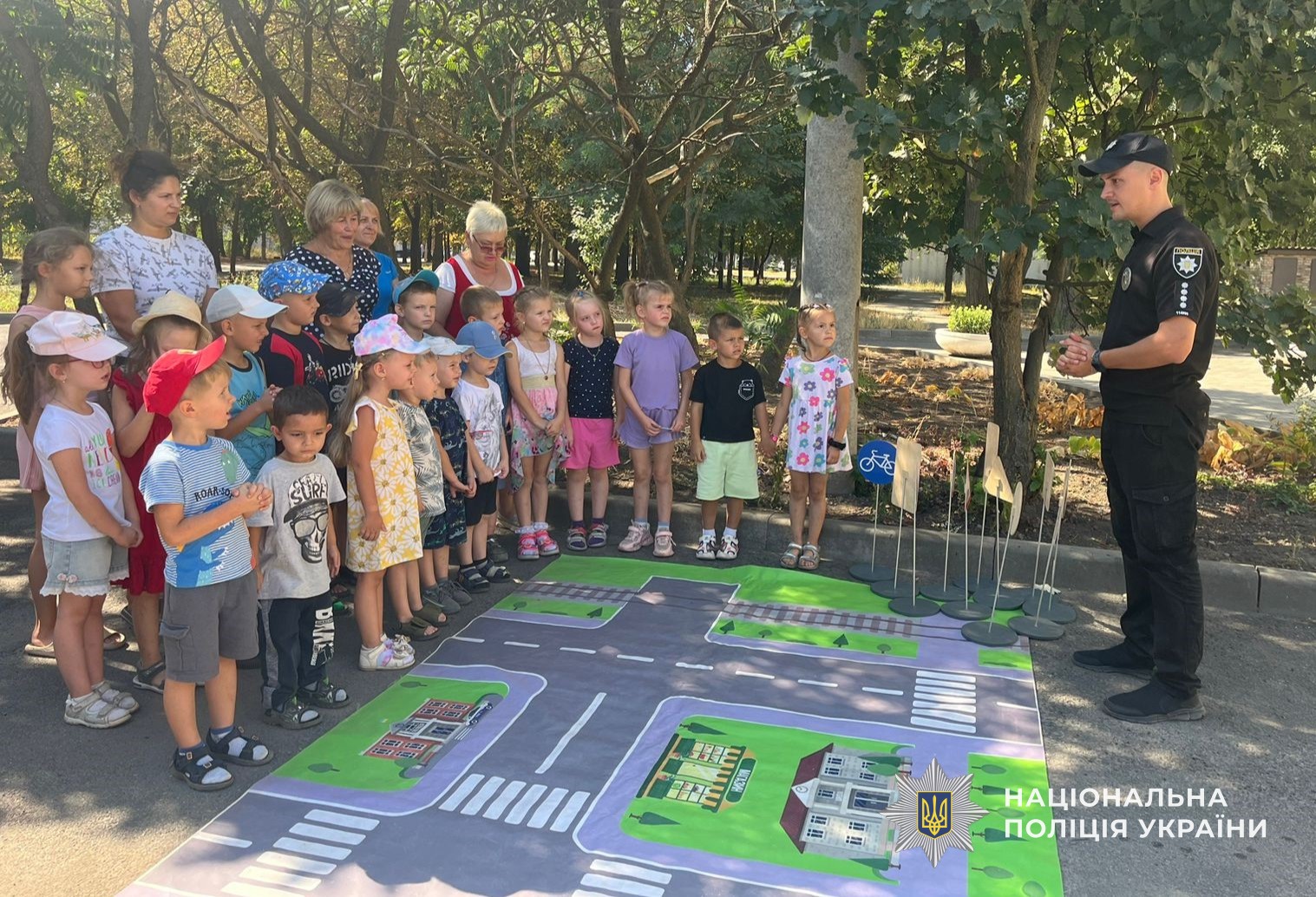 Під час зустрічі правоохоронці розповіли малюкам декілька простих правил безпеки й нагадали, як слід безпечно поводитися на дорозі, вдома та на вулиці.