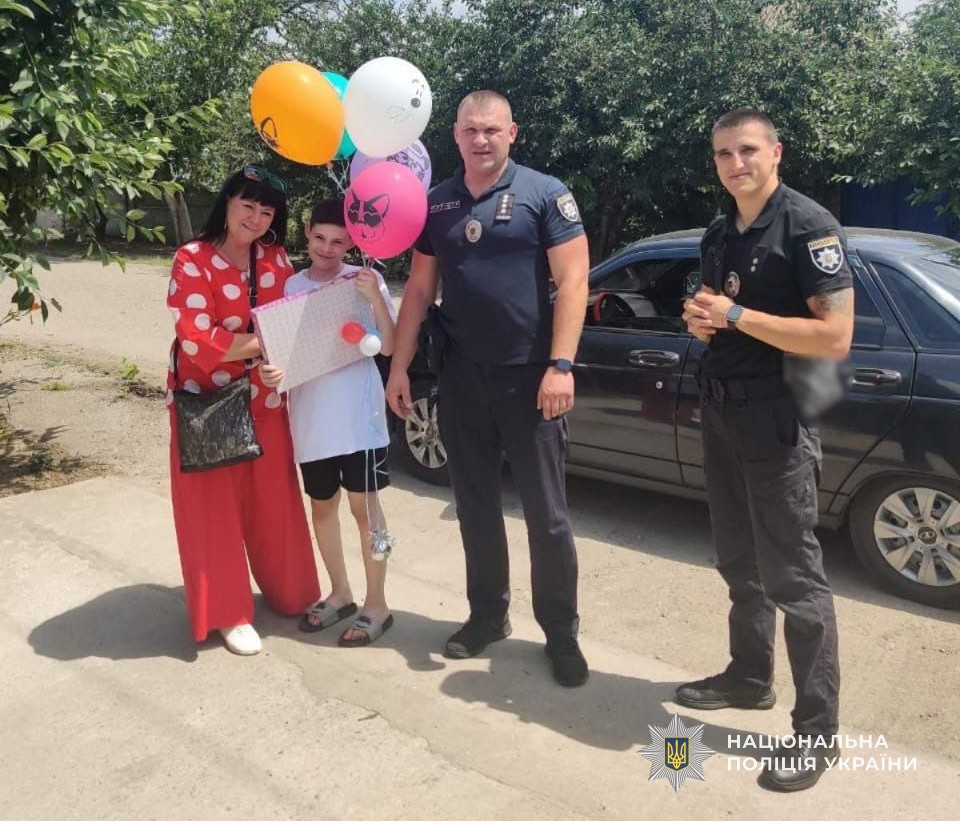 Мріяв зустрітися з поліцейськими: правоохоронці Нікопольщини привітали 11-річного Данила з днем народження