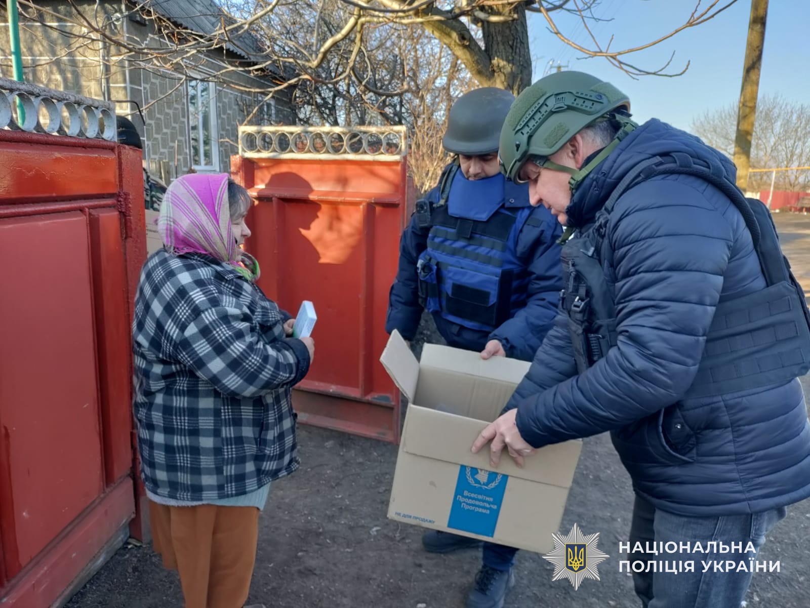 Гуманітарну допомогу й необхідні ліки 14 лютого поліцейські офіцери Межівської територіальної громади передали мешканцям у с. Новопідгородне.