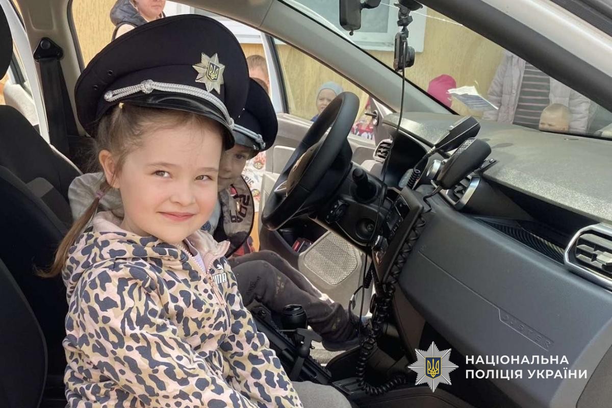 Із захопленням хлопці й дівчата послухали розповідь про професію поліцейського. Всі бажаючи дітки приміряли амуніцію, обстежили справжній поліцейський автомобіль та скористалися гучномовцем.