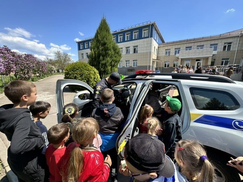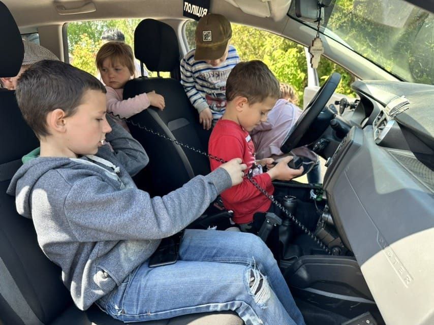 Наприкінці заходу поліцейські показали школярам службовий автомобіль із сиреною та гучномовцем. Діти відчули себе справжніми поліцейськими, примірявши захисне спорядження, яке використовують правоохоронці у службовій діяльності.