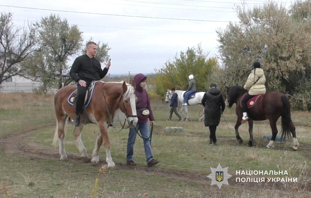 На Дніпропетровщині поліцейські психологи влаштували для поранених захисників екскурсію у кінний клуб