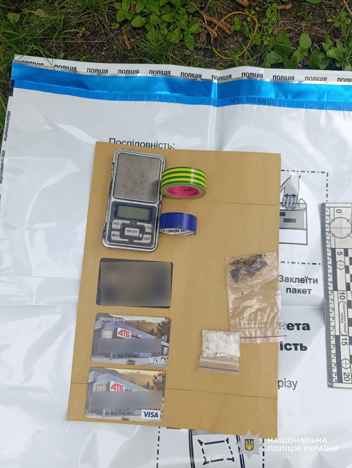 У результаті слідчих дій вилучено наркотичні засоби та психотропні речовини - канабіс, мефедрон, Альфа-PVP, таблетки, схожі на екстазі, значну кількість зіп- та сліп-пакетів із речовинами, електронні ваги, пакувальні матеріали, мікропробірки, мобільні телефони, ноутбук та інші носії інформації, банківські картки, SIM-карти, чорнові записи та товарно-транспортні накладні.