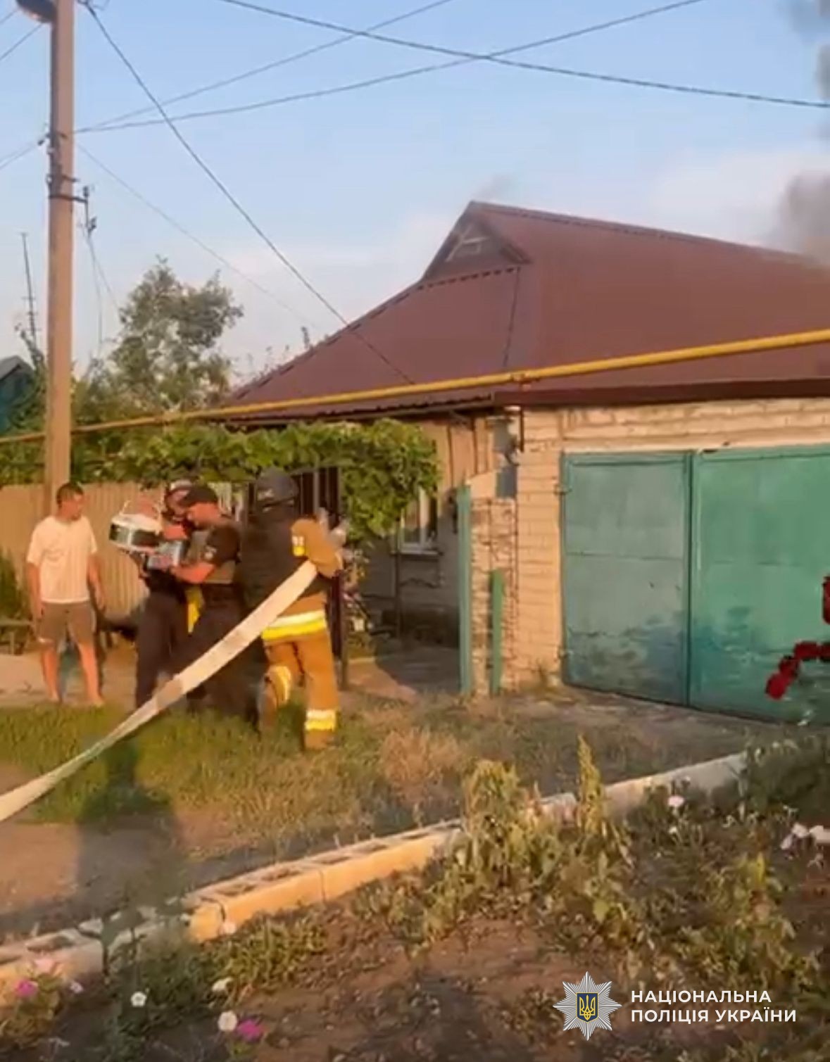 На Синельниківщині поліцейські допомогли загасити пожежу після ворожого удару