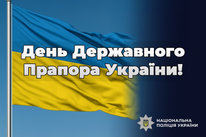 Але сьогодні прапор – не тільки один із символів держави. Він об'єднує мільйони сердець під своїми кольорами. Під синьо-жовтим стягом наші воїни дають відсіч російському агресору. Серед українських захисників - і поліцейські, які мужньо ідуть у бій, стоять на варті спокою та безпеки громадян. Виходячи на службу, ми пам’ятаємо, що робота поліції – бути там, де потрібна допомога людям, і завжди діяти в інтересах держави та суспільства.