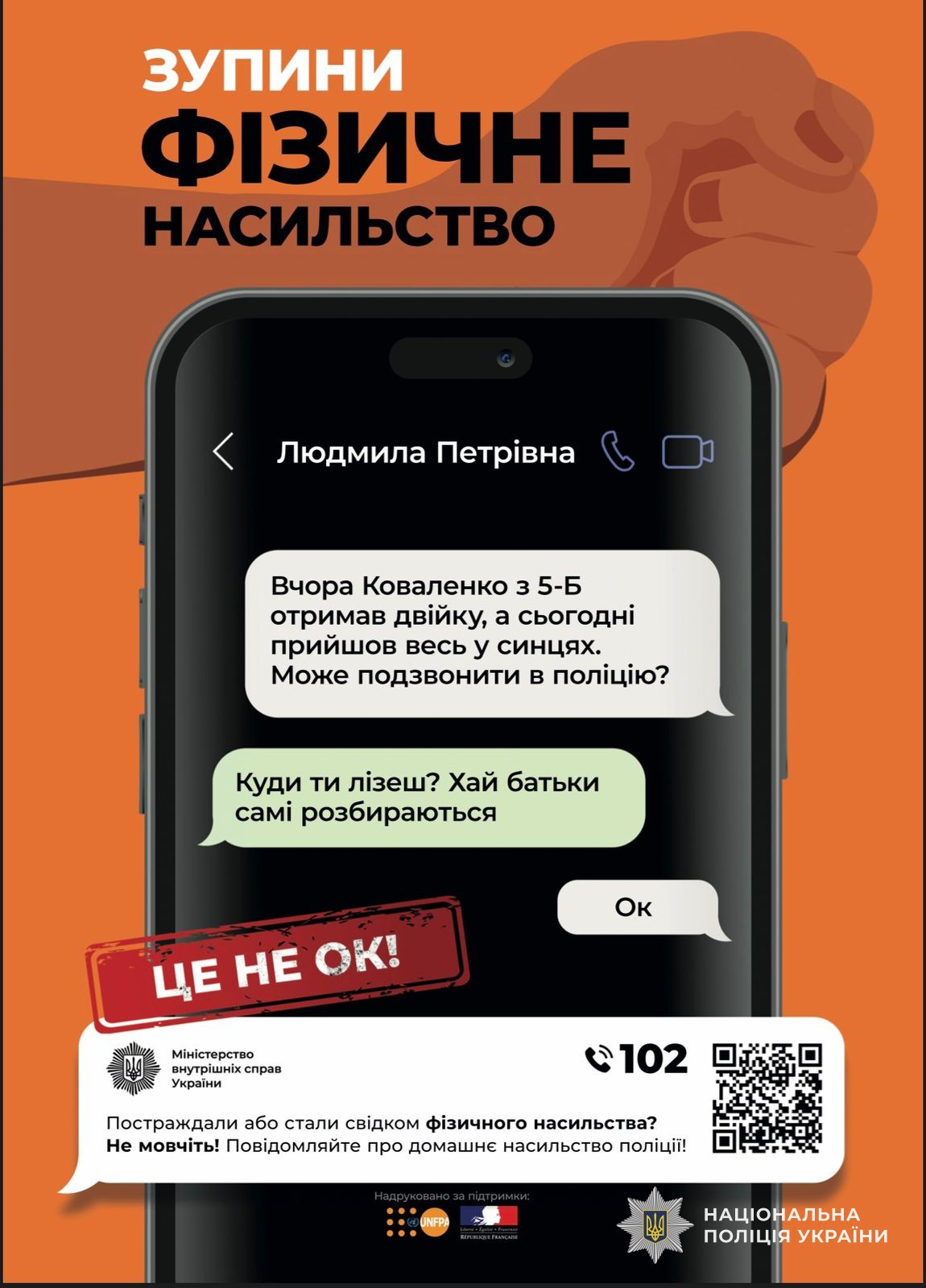 Правоохоронці нагадують: якщо ви або хтось із ваших рідних чи знайомих зазнали будь-якого прояву насильства або розумієте, що існує така загроза, памʼятайте, найголовніше правило - НЕ МОВЧАТИ!