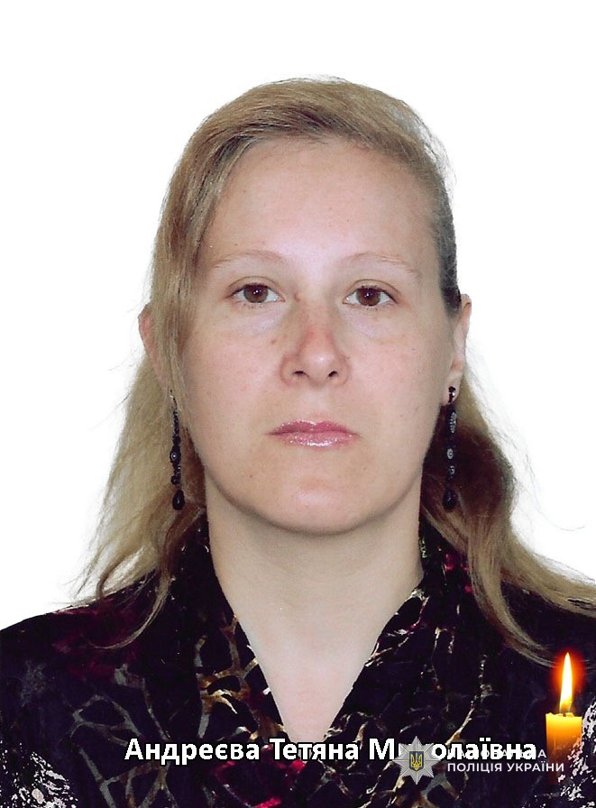 Ще одна цивільна жертва російського терору - Тетяна Андреєва. Їй було 42 роки. Жінка загинула під час виконання своєї щоденної роботи – вона наводила лад та підтримувала чистоту у будівлі Криворізького районного управління поліції.
