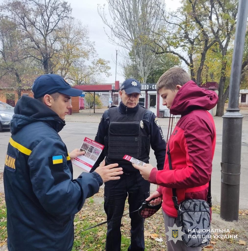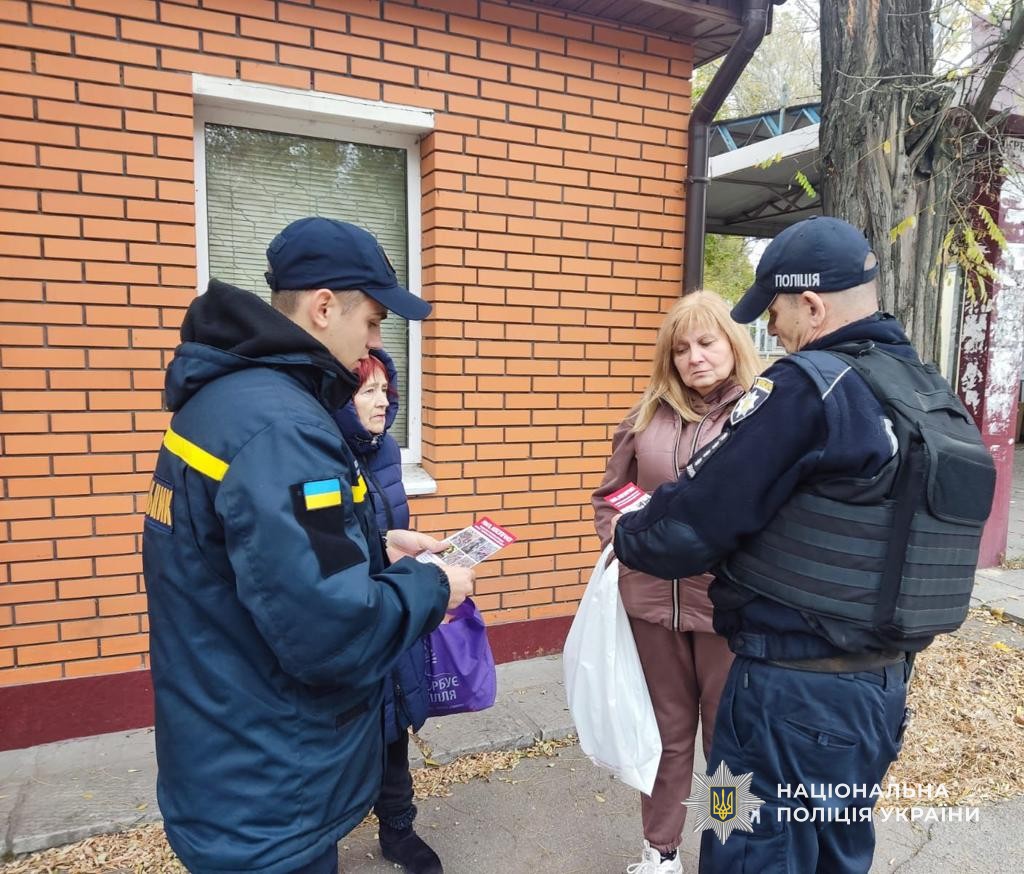 3 листопада працівники Нікопольського районного управління поліції та фахівці ДСНС відвідали громадські місця та розказали людям про можливі місця, де можуть бути нездетоновані боєприпаси, показали на листівках, як вони виглядають та чим вони небезпечні.