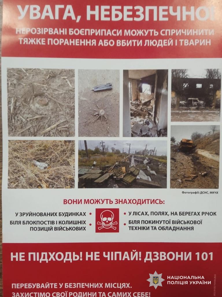 Також фахівці нагадали правила безпеки та закликали бути обережними при виявленні невідомих предметів, не торкатися їх, не переносити та не намагатися самостійно переміщати вибухонебезпечні предмети.