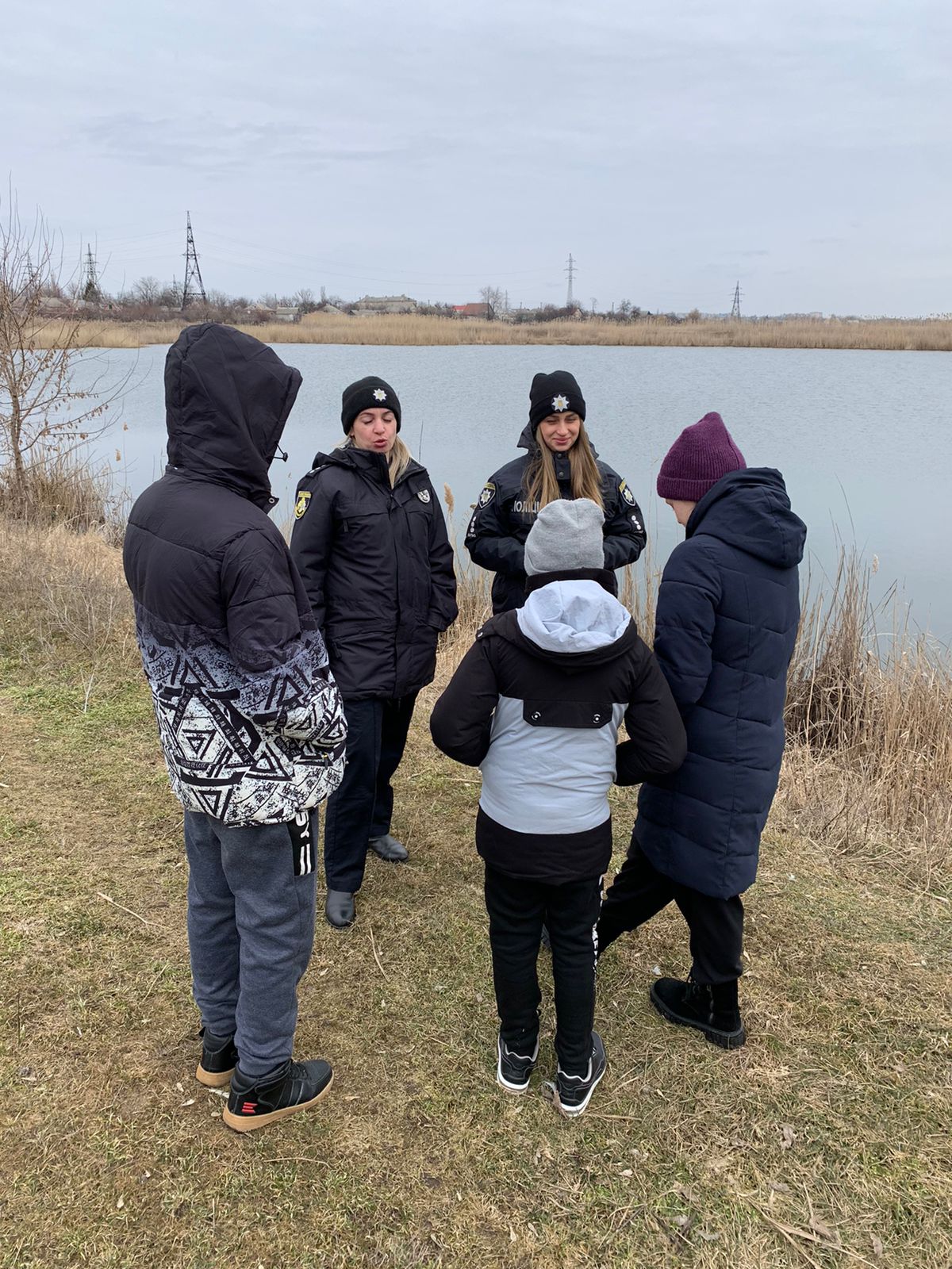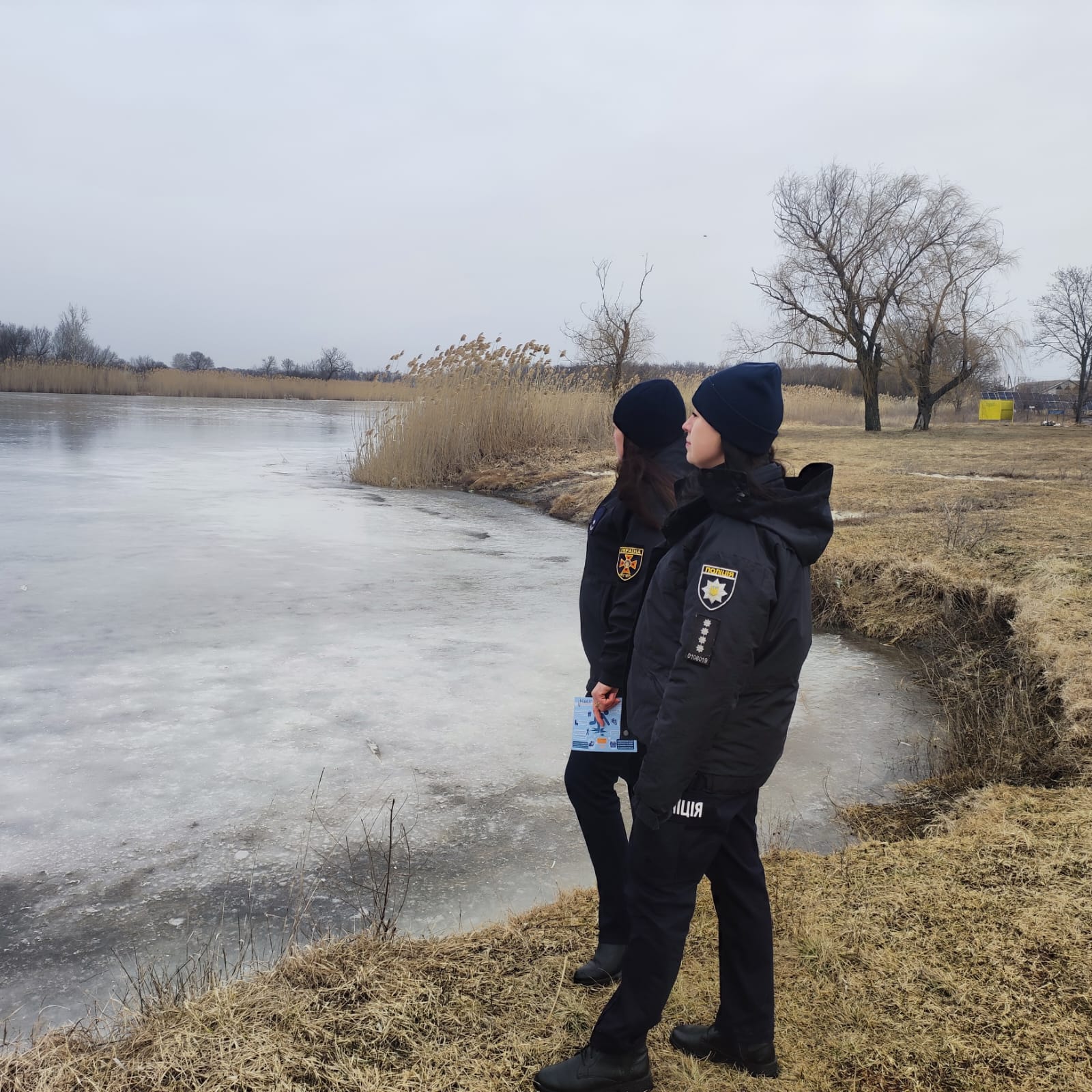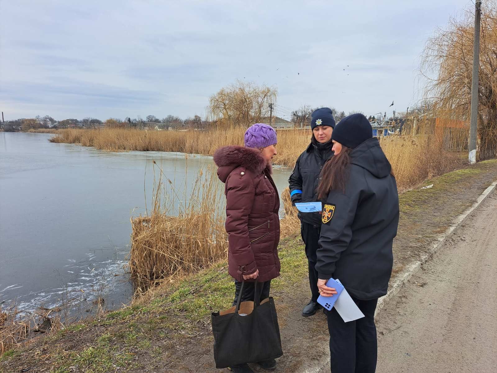 Поблизу річок Самара, Чаплинка, каналу Дніпро-Донбас поліцейські поспілкувалися із дорослими та дітьми про важливість дотримання правил безпеки під час перебування на кризі.