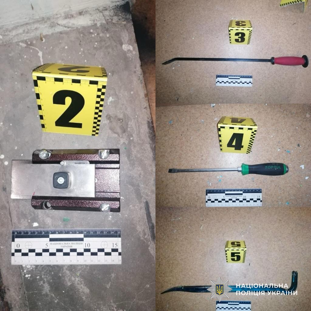 Прибувши на місце події, поліцейські затримали трьох крідіїв віком 32, 38 та 41 років та вилучили підготовлені знаряддя для взлому дверей.