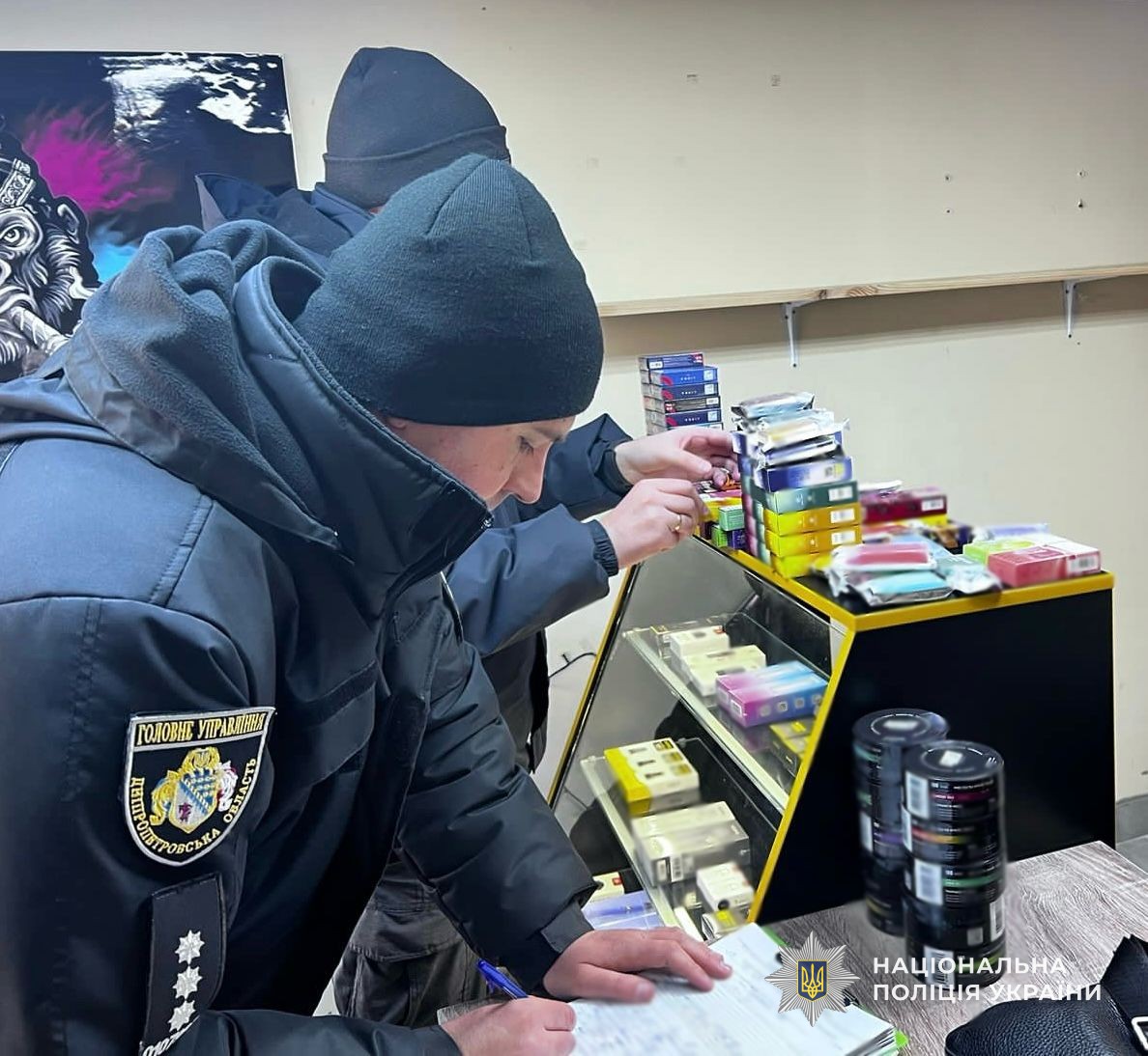 17 січня дільничні офіцери поліції міста виявили незаконну реалізацію електронних тютюнових виробів у Новокодацькому та Дніпровському районах міста. В ході перевірки торгівельних точок правоохоронці вилучили понад 620 штук електронних сигарет та близько 615 картриджів з рідиною для електронних пристроїв.