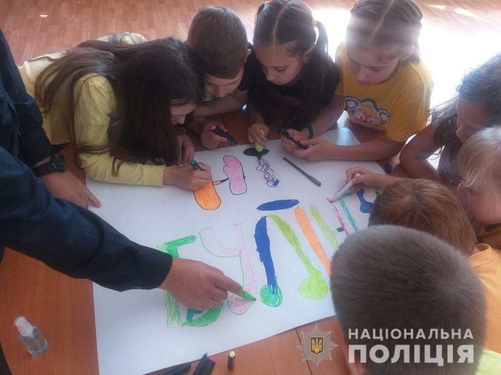 9 червня правоохоронці завітали до літнього табору при школі № 79, що у Соборному районі міста та провели для дітей пізнавальну бесіду. Вони розповіли про запобігання та відповідальність за цькування. Під час бесіди поліцейські разом з дітьми створили малюнок з тематичним написом.