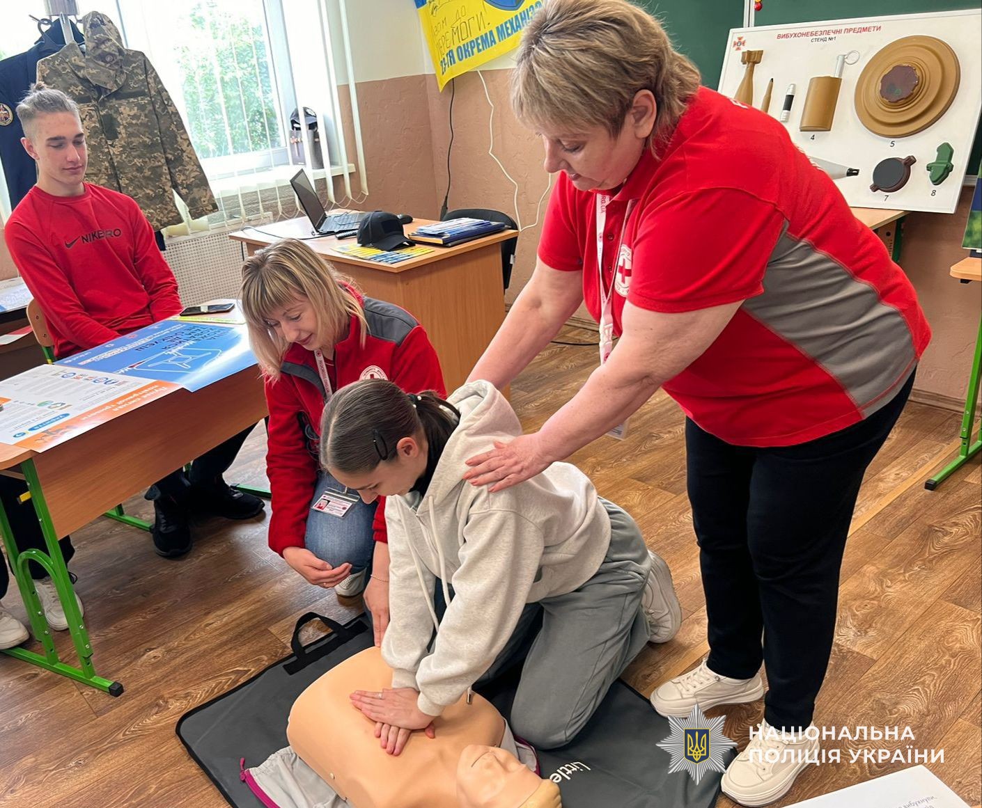 За допомогою навчальних матеріалів учні дізналися про порядок дій у разі виявлення вибухонебезпечних і підозрілих предметів, навчилися надавати домедичну допомогу.