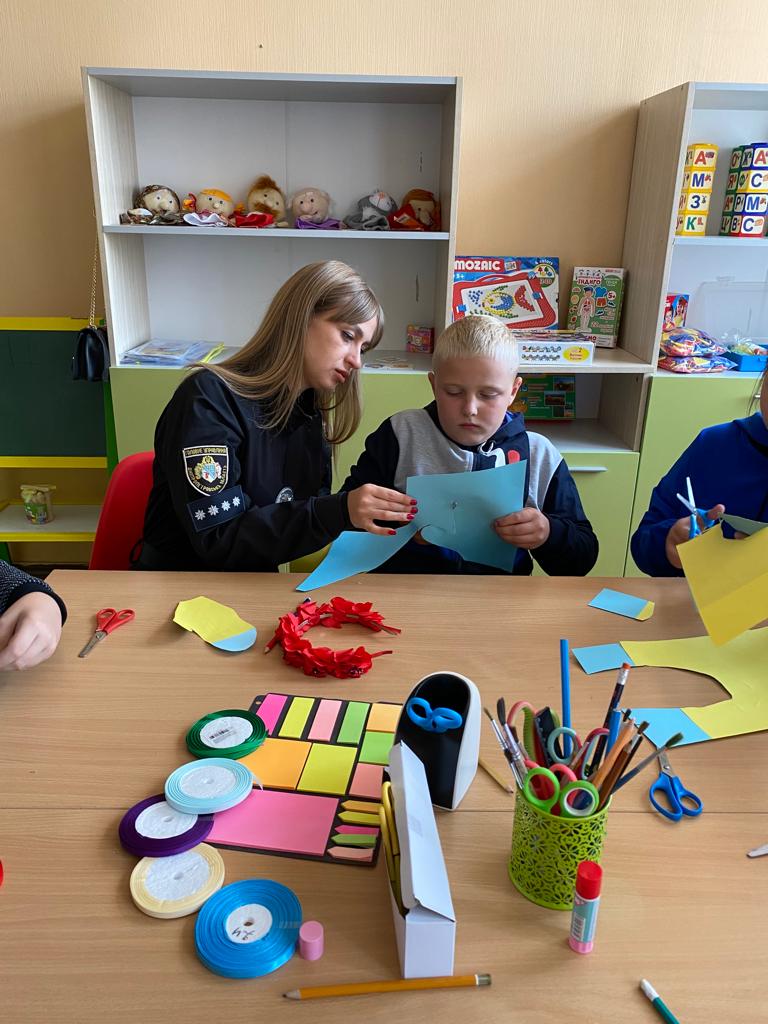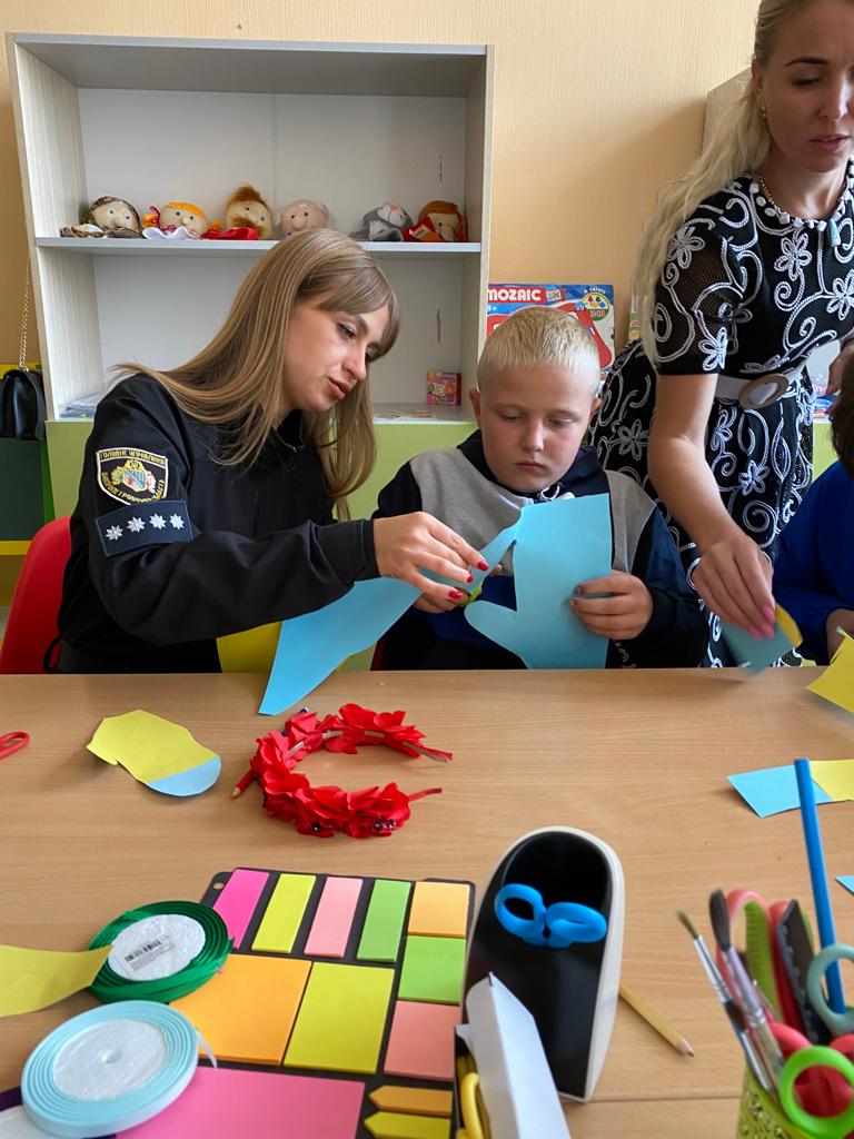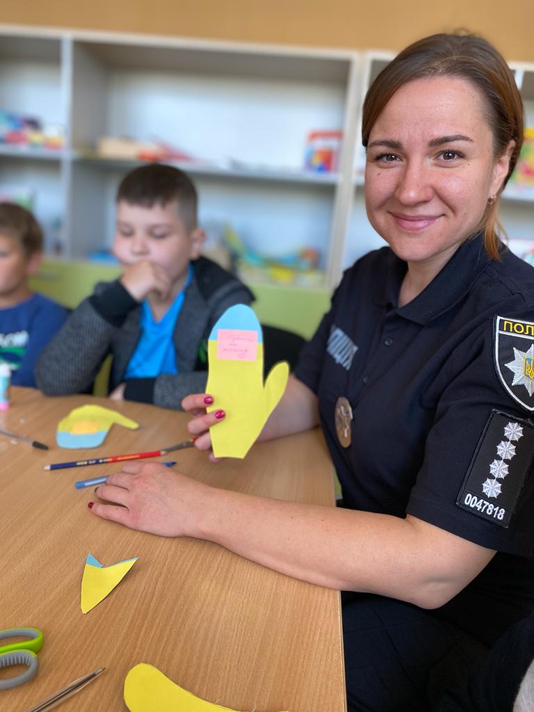 Правоохоронці допомогли діткам виготовити паперові долоньки - обереги, на яких хлопці та дівчата написали найкращі побажання для військових та поділилися своїми мріями про перемогу та довгоочікуваний мир на нашій Батьківщині.
