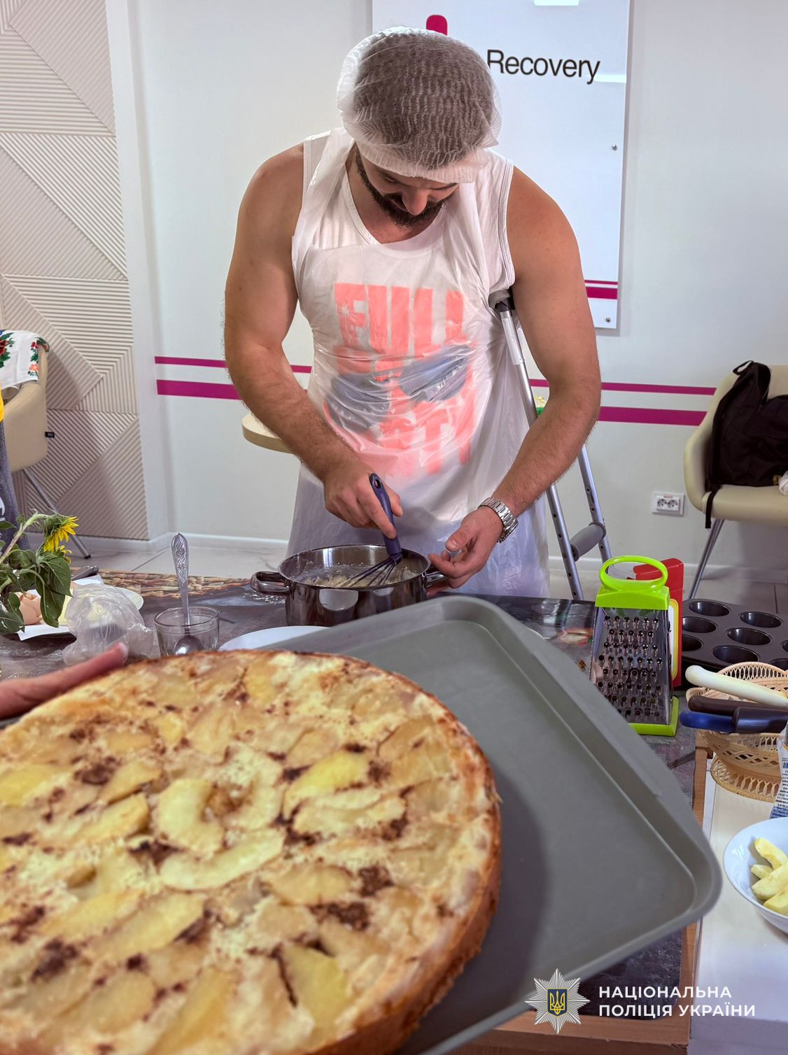 Щоб підтримати захисників не лише словами, а й ділом, правоохоронці разом із воїнами приготували домашні яблучні пироги — символи затишку, турботи й тепла. Спільна справа допомогла ненадовго відволіктися від складних думок, подарувала відчуття єдності та нагадала: навіть у лікарняних стінах можна відчути домашній затишок.