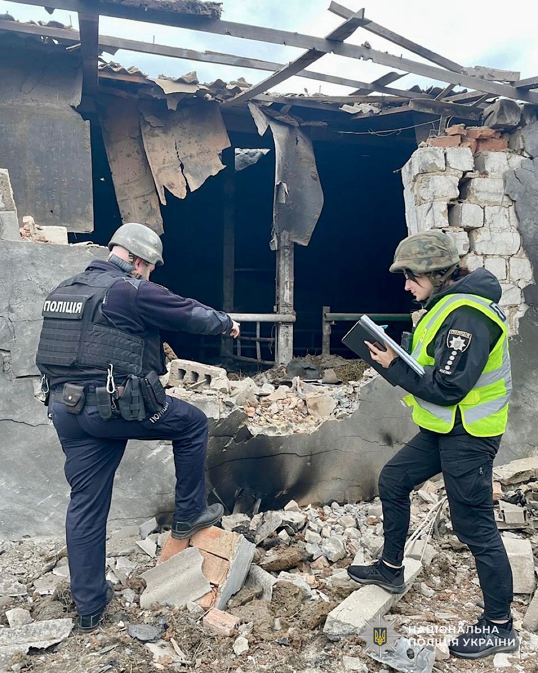 На місцях ударів працюють слідчо-оперативні групи поліції, які встановлюють остаточні наслідки воєнних злочинів. Групи слідчих проводять ретельний огляд, фіксують наслідки обстрілу та документують воєнний злочин, вчинений військами рф.