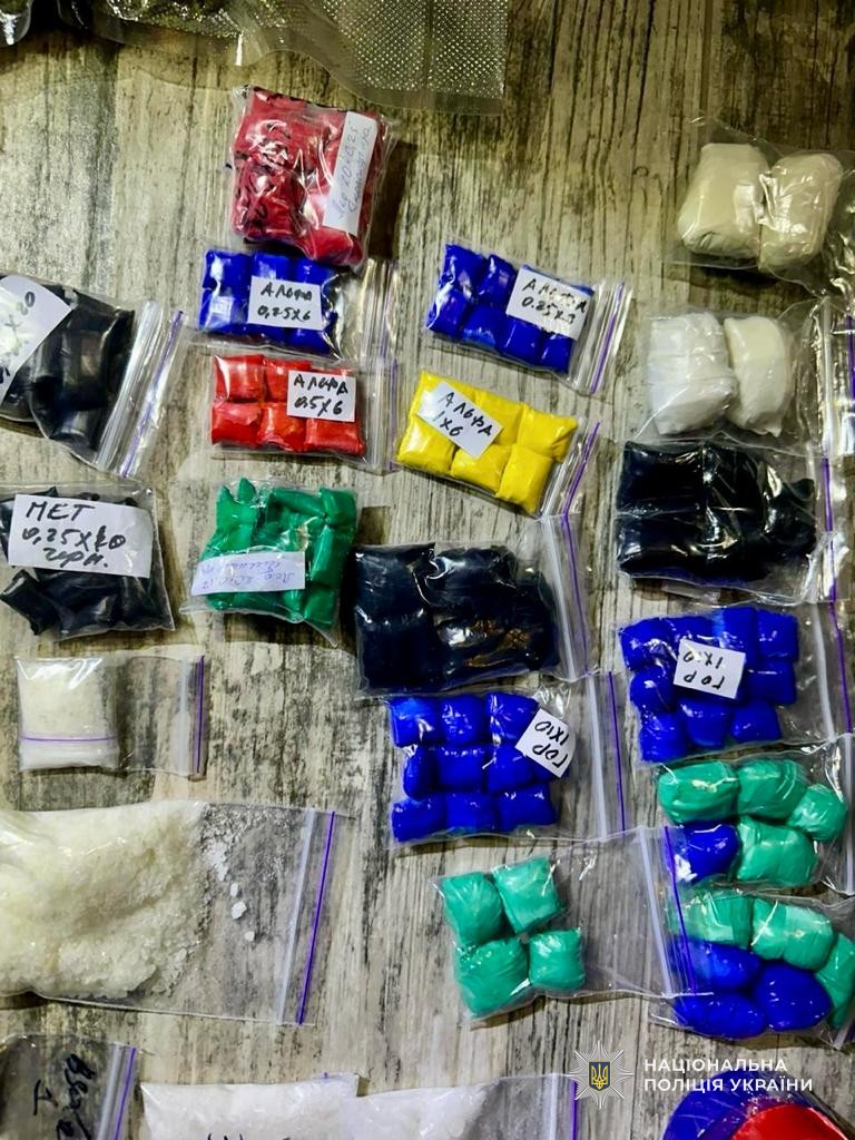 Згодом, під час обшуку квартири, яку орендував затриманий, поліцейські вилучили велику кількість підготовлених до подальшого збуту наркотичних речовин, серед яких - вакуумні пакети та згортки з марихуаною вагою понад 500 г та понад 100 сліп-пакетів з психотропами. Також у помешканні правоохоронці виявили порожні сліп-пакети, ізоляційні стрічки різноманітних кольорів, вакууматор, електронні ваги, мірні ємкості із залишками речовини рослинного походження, які чоловік використовував для пакування товару.