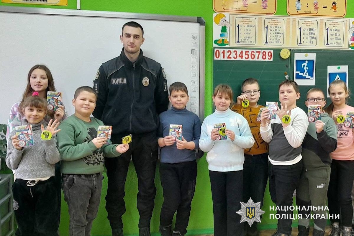 У межах інформаційної ініціативи «Освіти себе в нічний час» правоохоронець провів для учнів молодших класів пізнавальний захід, під час якого нагадав основні правила дорожнього руху та безпечної поведінки на дорозі. Діти повторили, де дозволено переходити проїжджу частину, як правильно користуватися пішохідними переходами, що означають дорожні знаки та чому важливо бути уважними поблизу дороги.